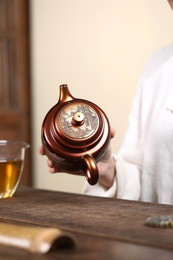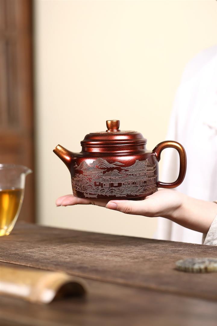 460cc原礦紫泥貝殼燒金砂淩峰德鐘壺POT8477
