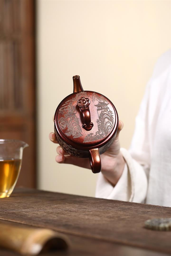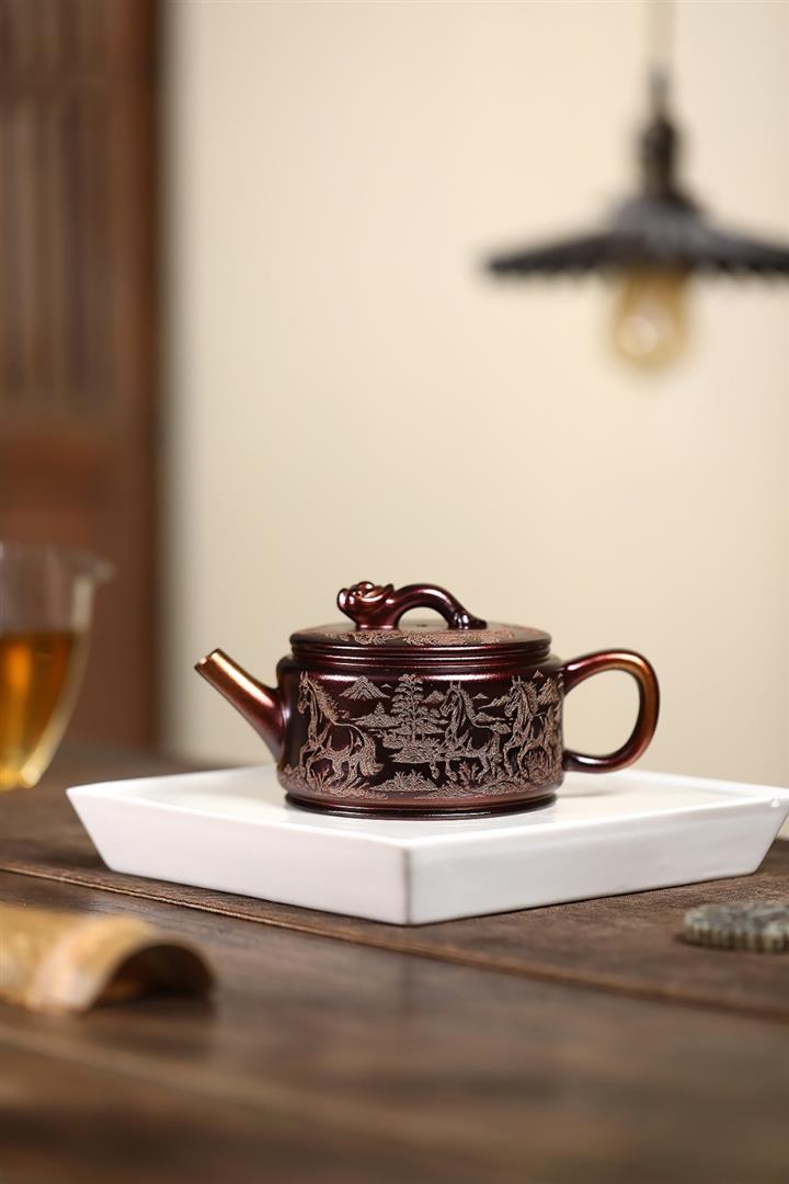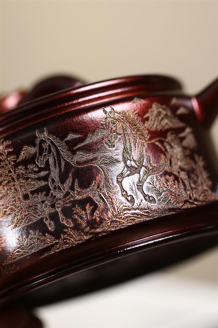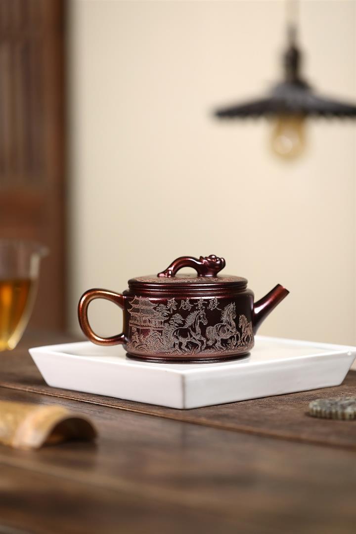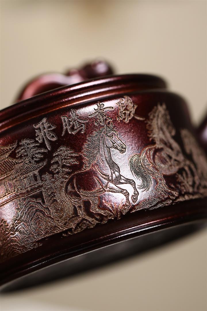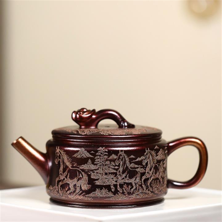 200cc原礦古紅泥遊龍戲鳳漢瓦茶壺POT8137