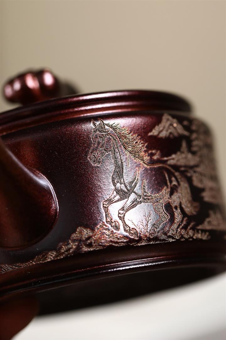 【泥料特點】砂土氣重,似淳實農民,日久使用,漸露鋒芒,養成變化,溫潤莊重。紫砂是壹種雙重氣孔結構的多孔性材質,氣孔微細,密度高。用紫砂壺沏茶,不失原味,且香不渙散,得茶之真香真味。紫砂使用越久,壺身色澤越發光亮照人,氣韻溫雅。紫砂壺長久使用器身會因撫摸擦拭,變得越發溫潤光澤。