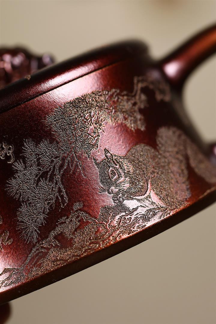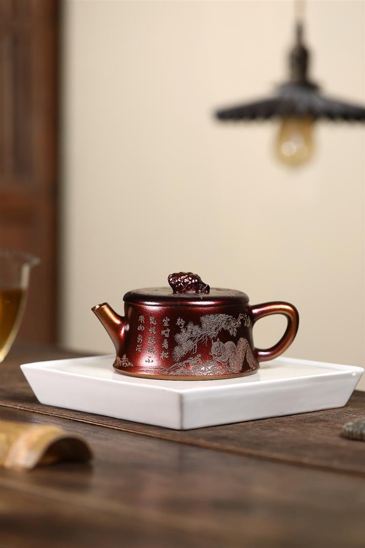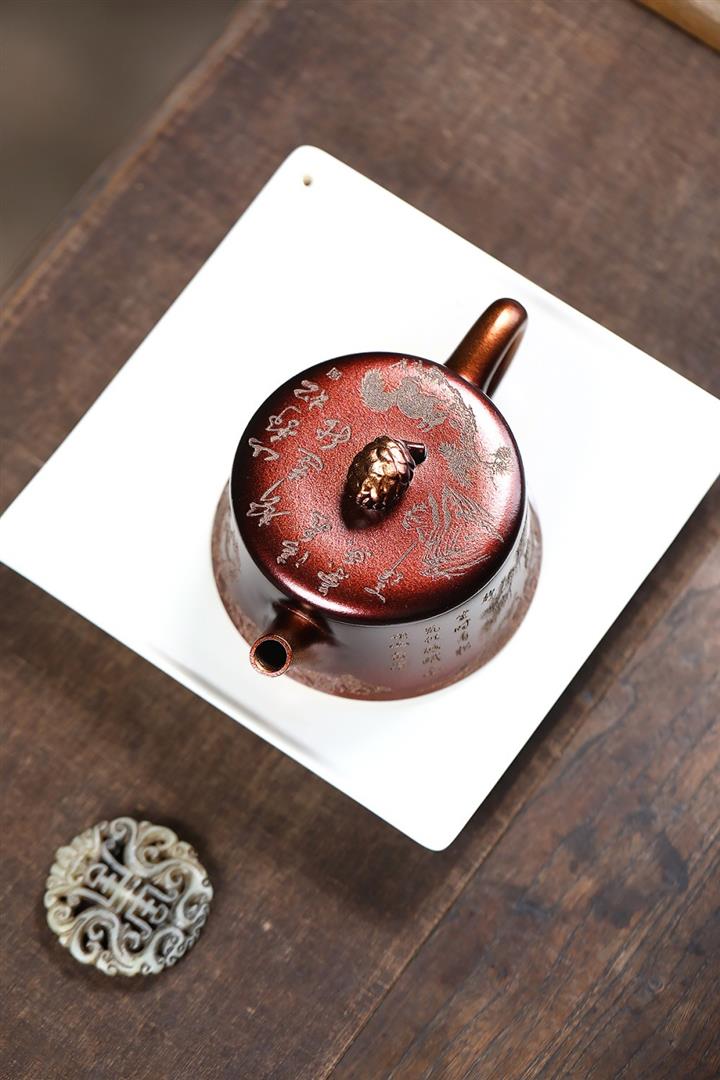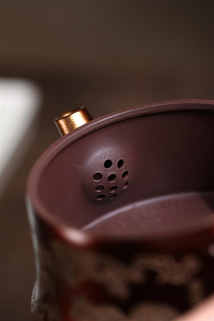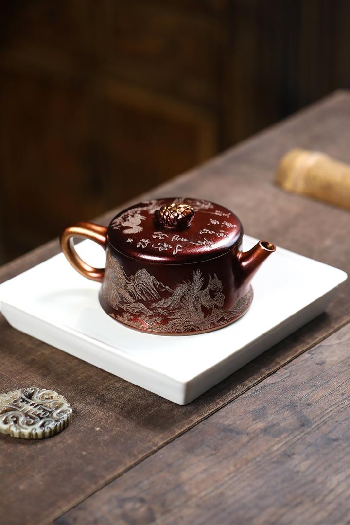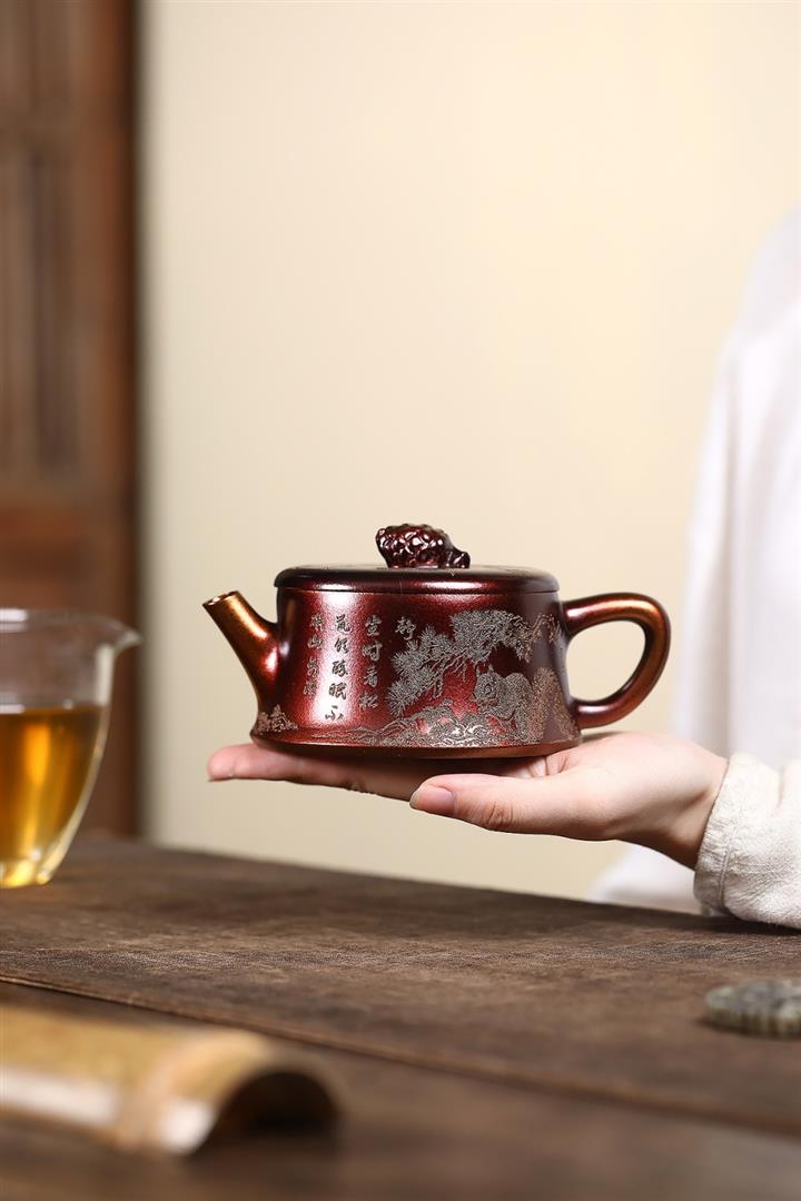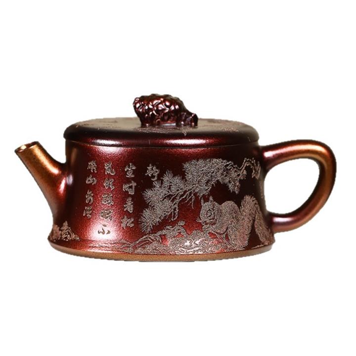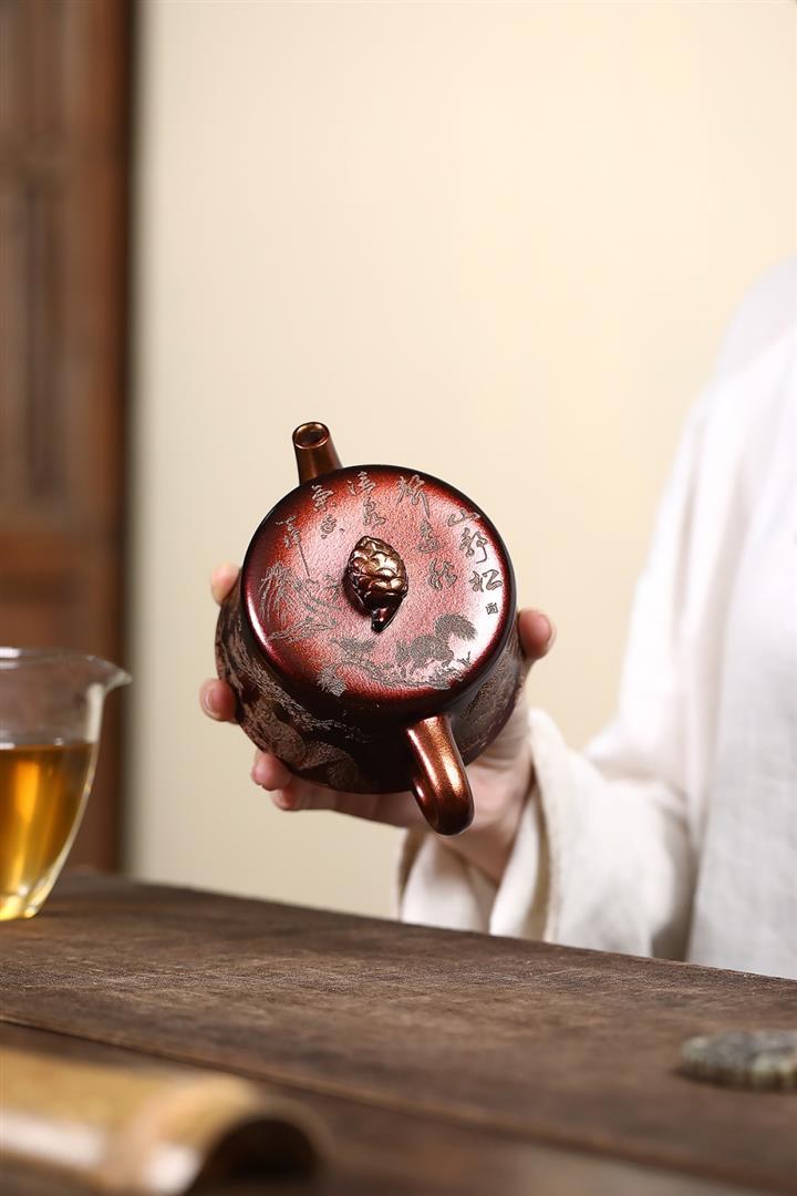 280cc原礦紫泥貝殼燒金砂松趣漢瓦壺POT8479