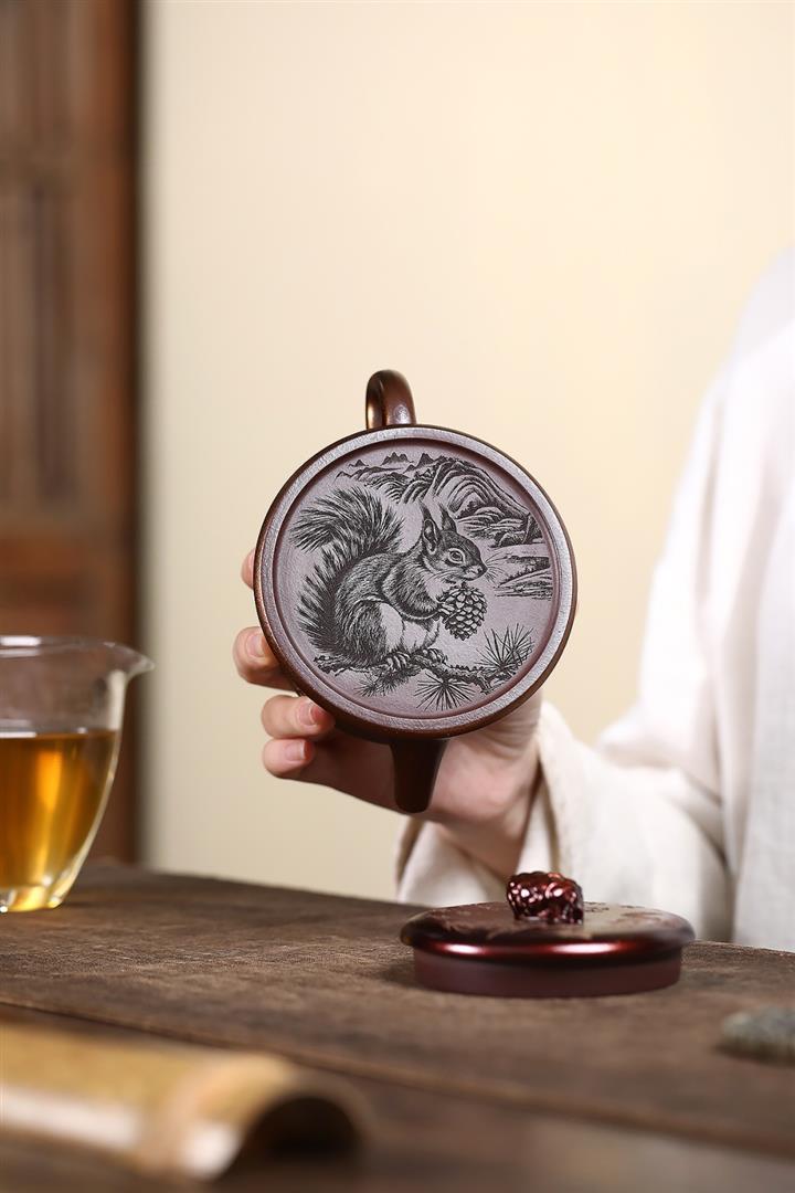 【泥料特點】砂土氣重,似淳實農民,日久使用,漸露鋒芒,養成變化,溫潤莊重。紫砂是壹種雙重氣孔結構的多孔性材質,氣孔微細,密度高。用紫砂壺沏茶,不失原味,且香不渙散,得茶之真香真味。紫砂使用越久,壺身色澤越發光亮照人,氣韻溫雅。紫砂壺長久使用器身會因撫摸擦拭,變得越發溫潤光澤。