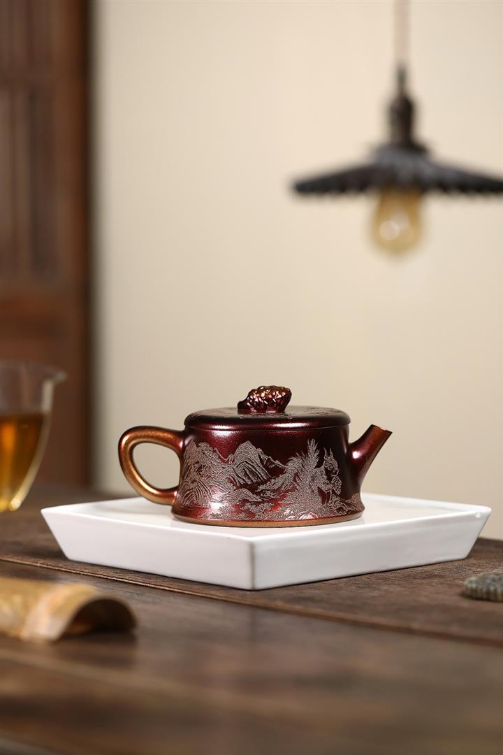 【作品介紹】此款壺形線條流暢,壺把,壺嘴,壺身壹氣呵成栩栩如生,是收藏把玩的好壺,泥料色澤古樸典雅,日久使用,漸露鋒芒,養成變化快,溫潤莊重,用其泡茶,使用的年代久,壺身就溫潤,泡出來的茶湯也就醇郁芳馨。
