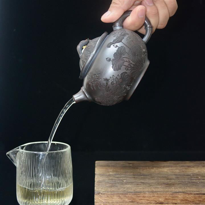 【泥料特點】砂土氣重,似淳實農民,日久使用,漸露鋒芒,養成變化,溫潤莊重。紫砂是壹種雙重氣孔結構的多孔性材質,氣孔微細,密度高。用紫砂壺沏茶,不失原味,且香不渙散,得茶之真香真味。紫砂使用越久,壺身色澤越發光亮照人,氣韻溫雅。紫砂壺長久使用器身會因撫摸擦拭,變得越發溫潤光澤。