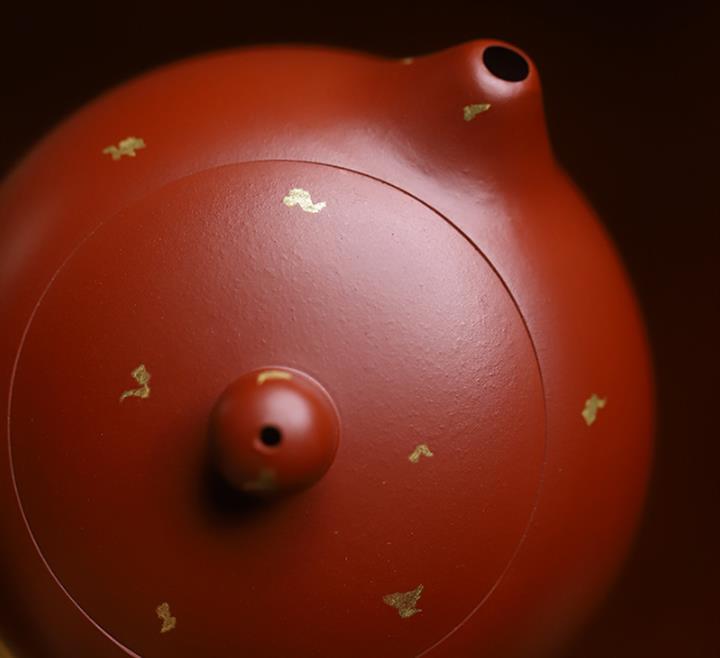 220cc原礦 大紅袍還原燒堆繪金梅花牛蓋茶壺POT9030