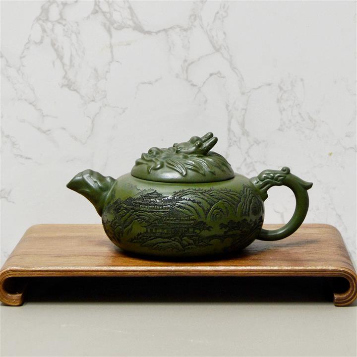 250cc原礦綠泥山水獨占鰲頭泡茶壺POT8511