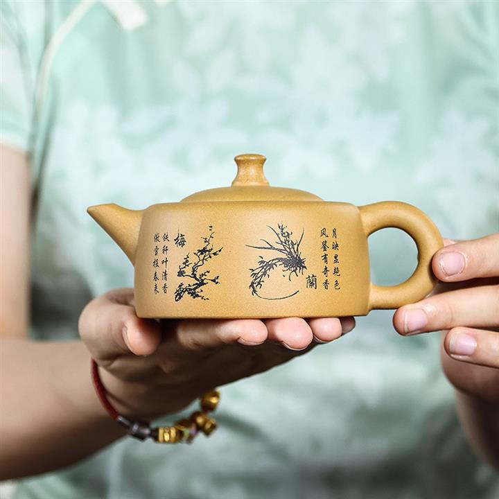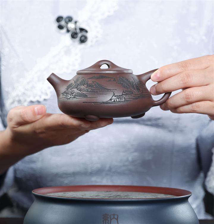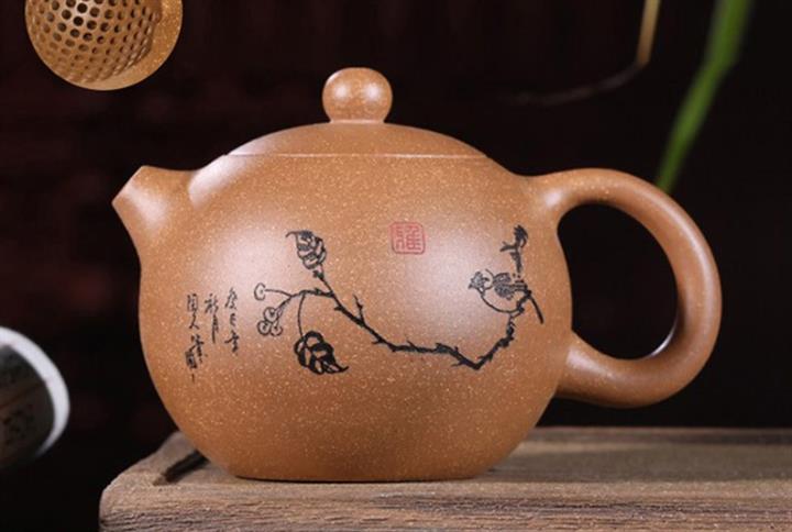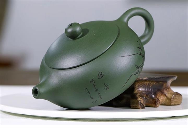 【泥料特點】砂土氣重,似淳實農民,日久使用,漸露鋒芒,養成變化,溫潤莊重。紫砂是壹種雙重氣孔結構的多孔性材質,氣孔微細,密度高。用紫砂壺沏茶,不失原味,且香不渙散,得茶之真香真味。紫砂使用越久,壺身色澤越發光亮照人,氣韻溫雅。紫砂壺長久使用器身會因撫摸擦拭,變得越發溫潤光澤。