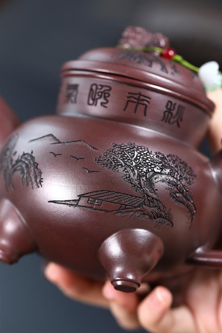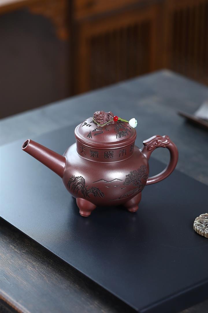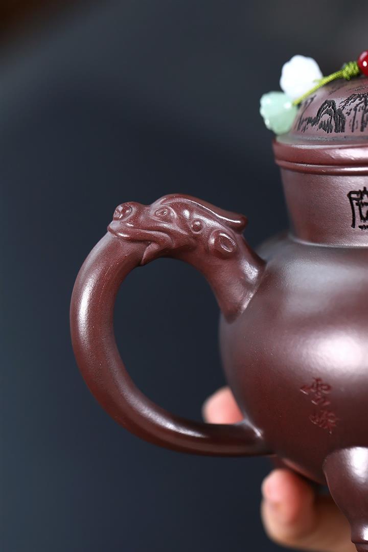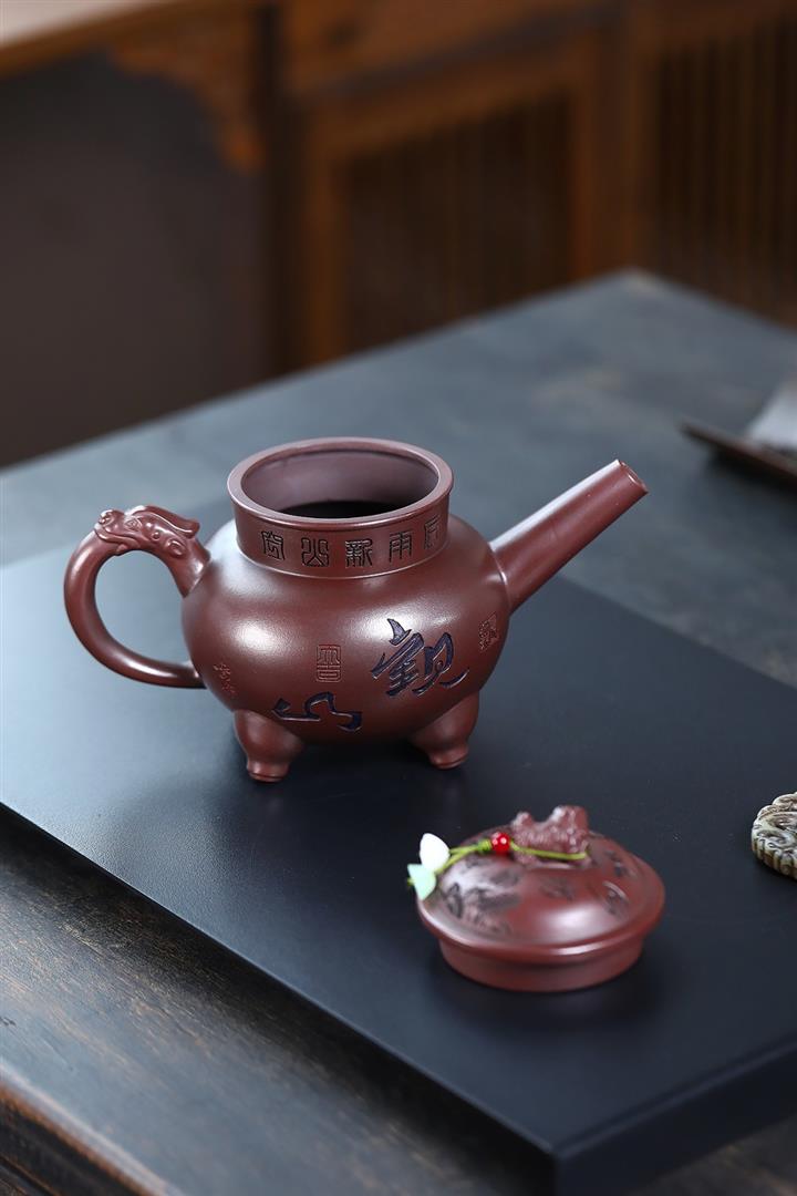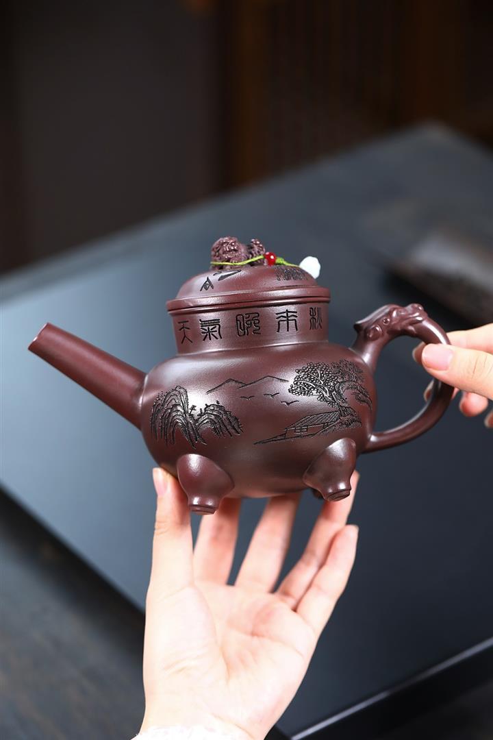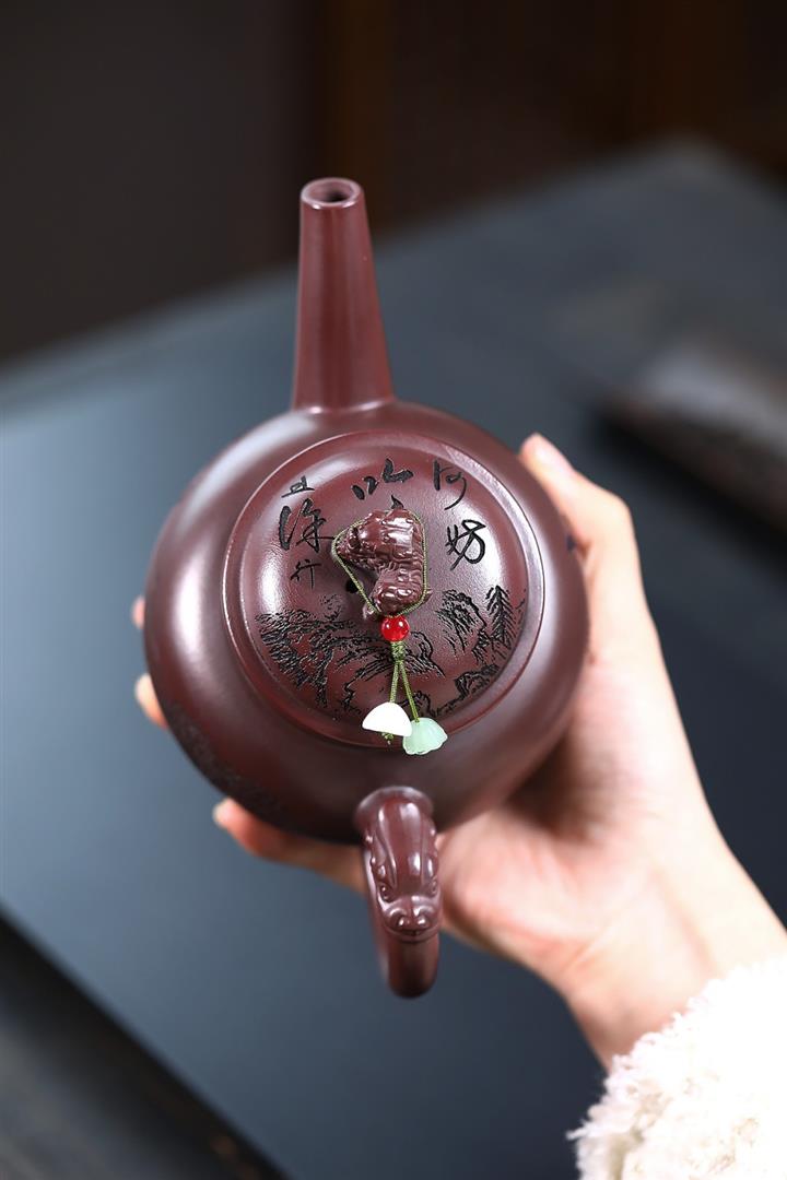 【作品介紹】此款壺形線條流暢,壺把,壺嘴,壺身壹氣呵成栩栩如生,是收藏把玩的好壺,泥料色澤古樸典雅,日久使用,漸露鋒芒,養成變化快,溫潤莊重,用其泡茶,使用的年代久,壺身就溫潤,泡出來的茶湯也就醇郁芳馨。