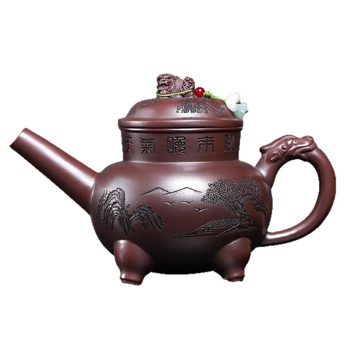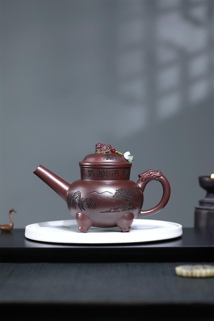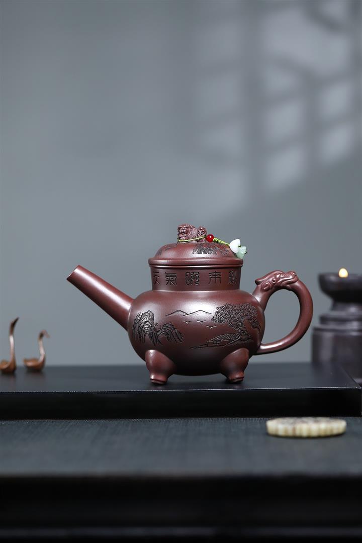 450cc原礦古銅烏泥龍獅垂釣茶壺POT8526