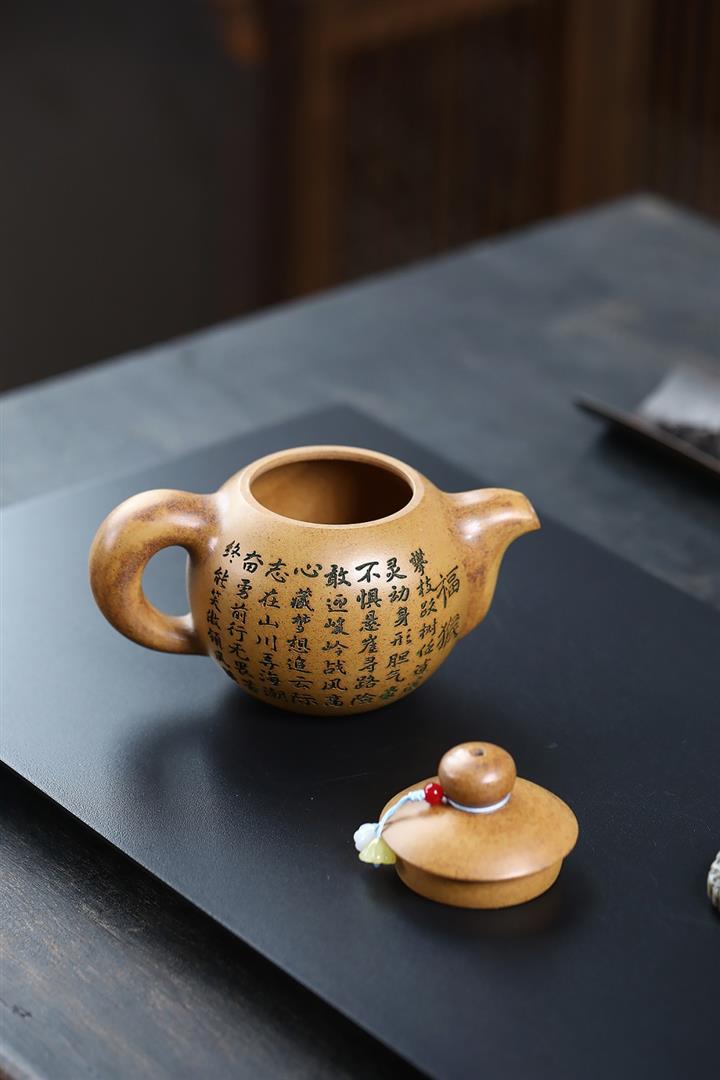 【作品介紹】此款壺形線條流暢,壺把,壺嘴,壺身壹氣呵成栩栩如生,是收藏把玩的好壺,泥料色澤古樸典雅,日久使用,漸露鋒芒,養成變化快,溫潤莊重,用其泡茶,使用的年代久,壺身就溫潤,泡出來的茶湯也就醇郁芳馨。