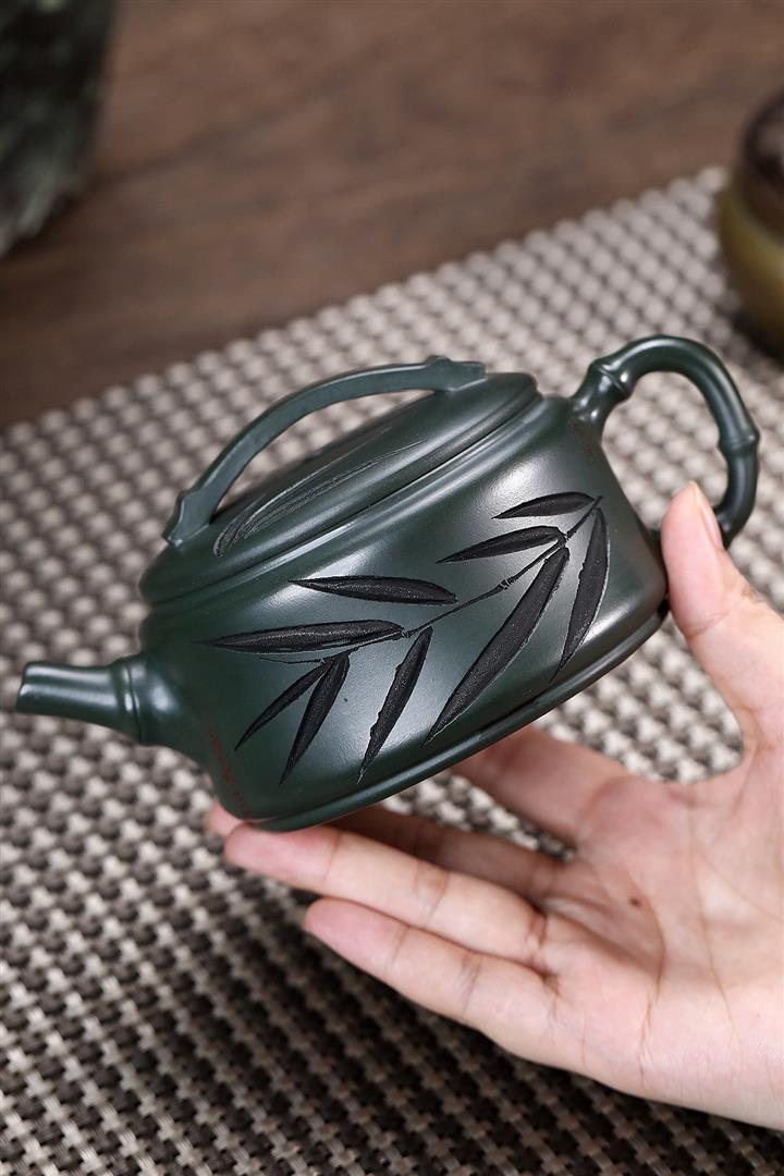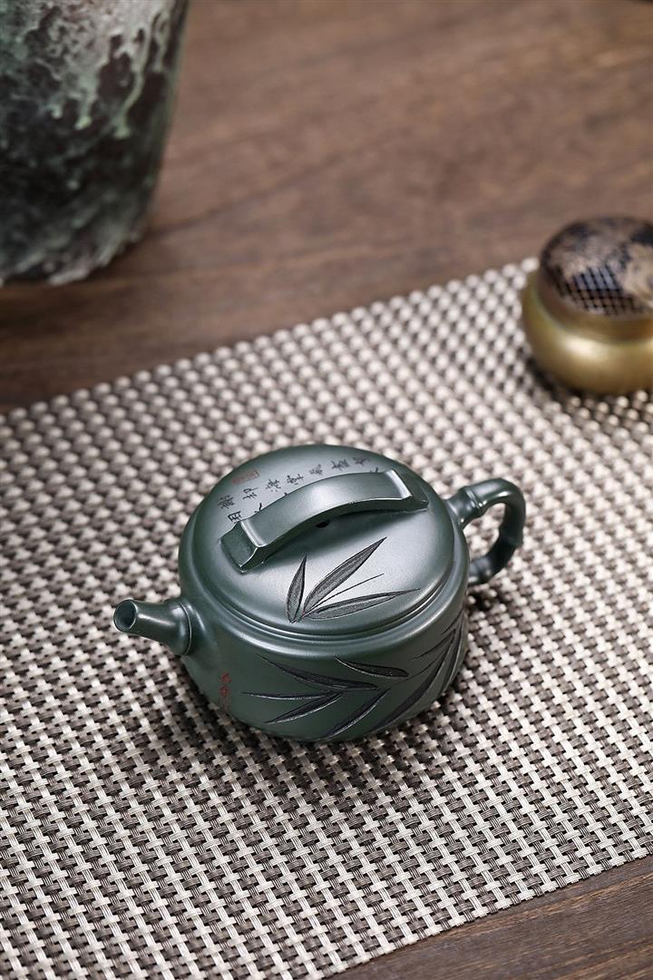300cc原礦綠泥清風雅韻竹節漢瓦茶壺POT8530