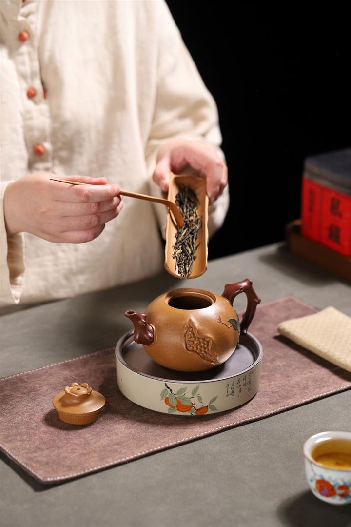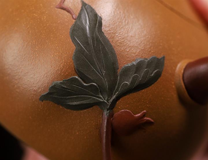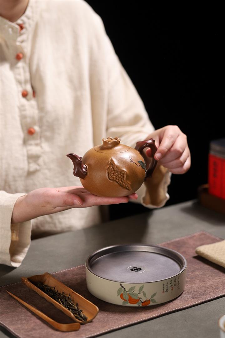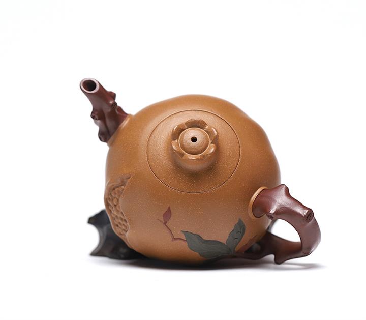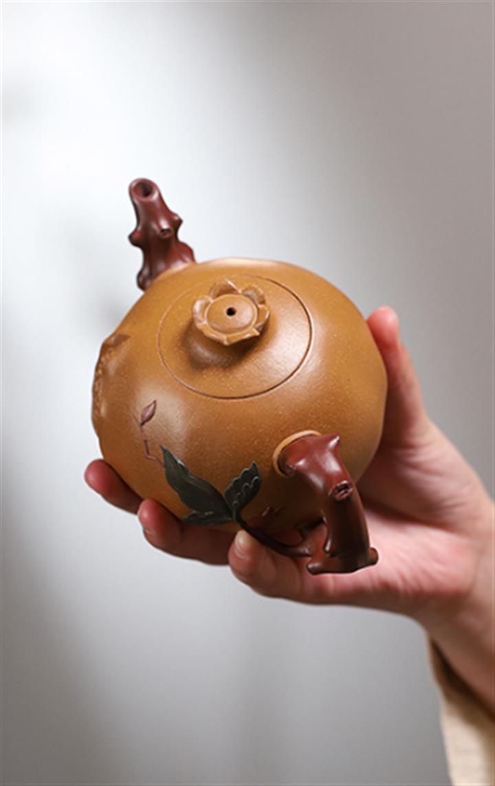 庚·高溫柴燒三足蓮年有余紫砂壺POT6423