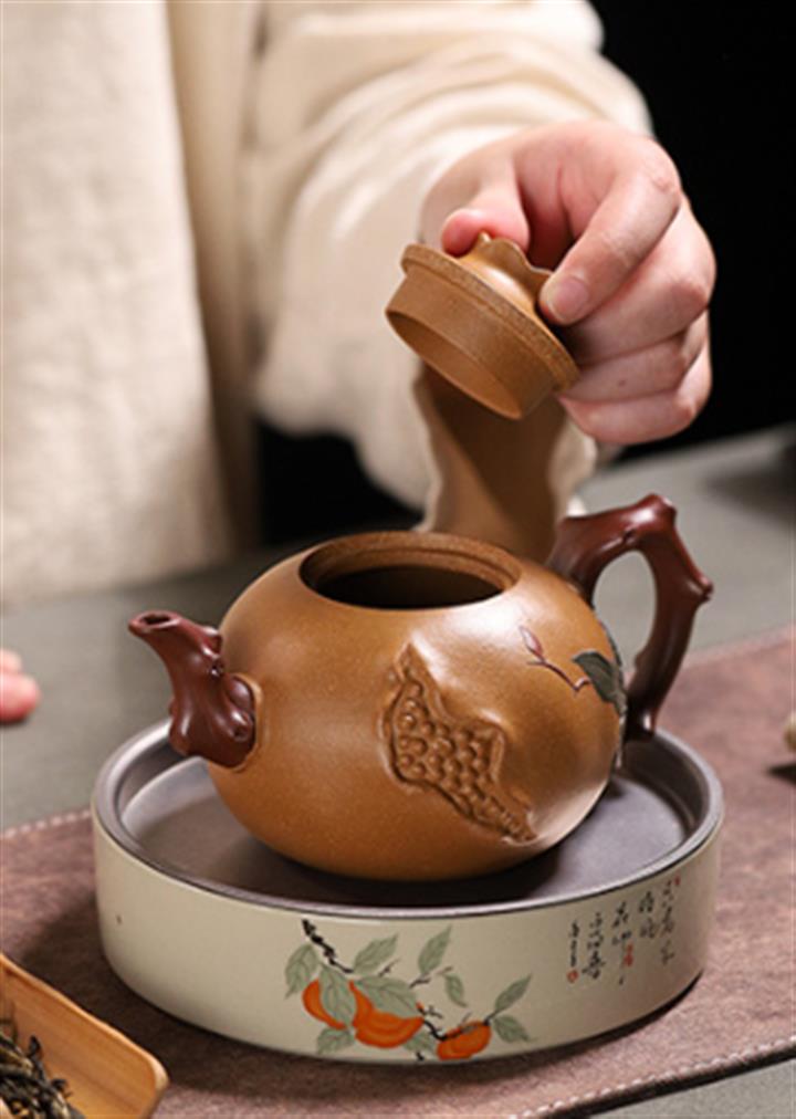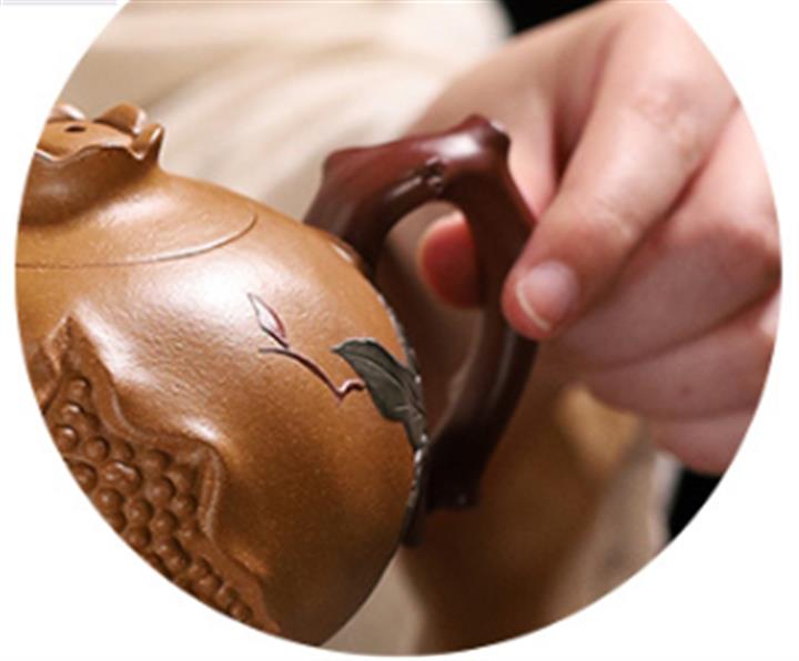 【泥料特點】砂土氣重,似淳實農民,日久使用,漸露鋒芒,養成變化,溫潤莊重。紫砂是壹種雙重氣孔結構的多孔性材質,氣孔微細,密度高。用紫砂壺沏茶,不失原味,且香不渙散,得茶之真香真味。紫砂使用越久,壺身色澤越發光亮照人,氣韻溫雅。紫砂壺長久使用器身會因撫摸擦拭,變得越發溫潤光澤。