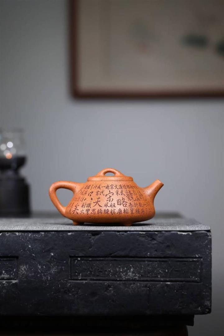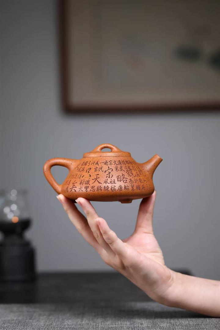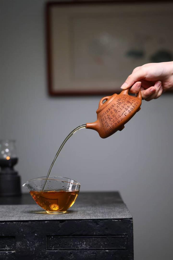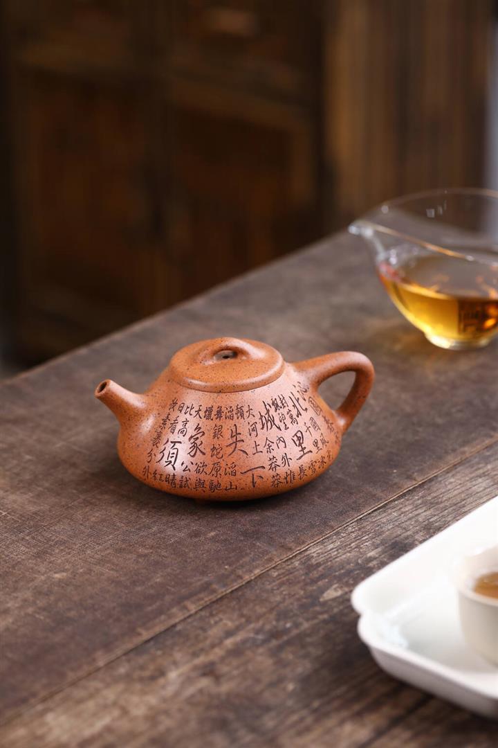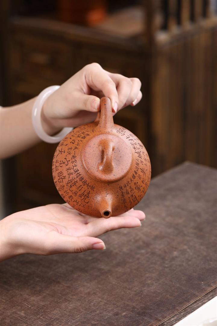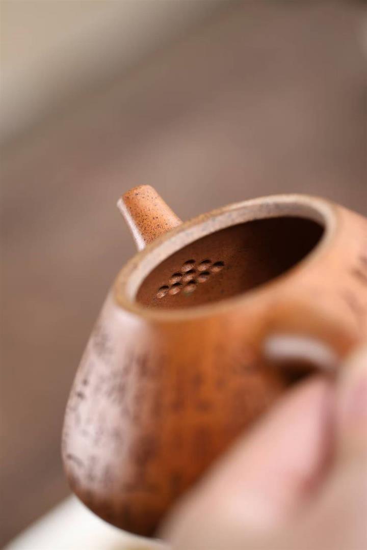【泥料特點】砂土氣重,似淳實農民,日久使用,漸露鋒芒,養成變化,溫潤莊重。紫砂是壹種雙重氣孔結構的多孔性材質,氣孔微細,密度高。用紫砂壺沏茶,不失原味,且香不渙散,得茶之真香真味。紫砂使用越久,壺身色澤越發光亮照人,氣韻溫雅。紫砂壺長久使用器身會因撫摸擦拭,變得越發溫潤光澤。
