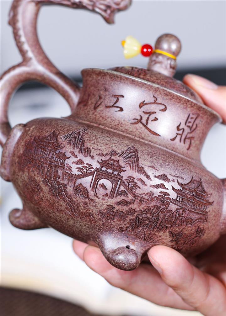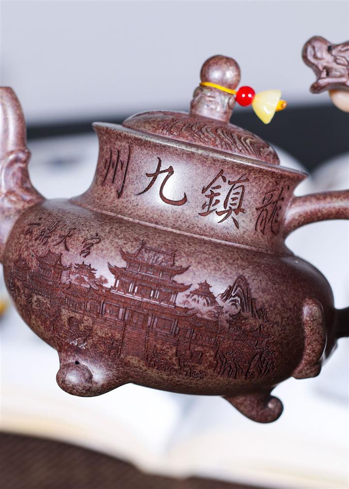 【作品介紹】此款壺形線條流暢,壺把,壺嘴,壺身壹氣呵成栩栩如生,是收藏把玩的好壺,泥料色澤古樸典雅,日久使用,漸露鋒芒,養成變化快,溫潤莊重,用其泡茶,使用的年代久,壺身就溫潤,泡出來的茶湯也就醇郁芳馨。