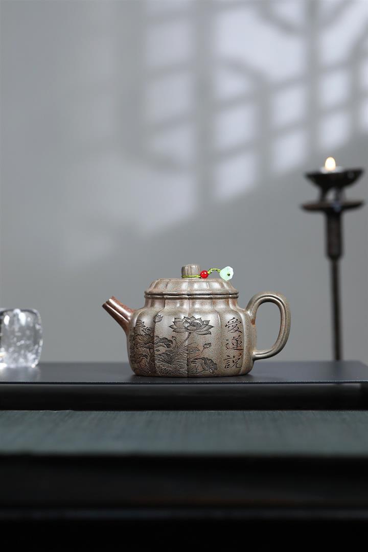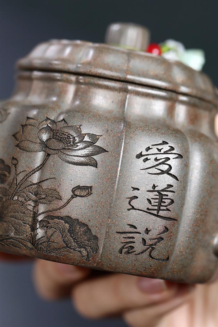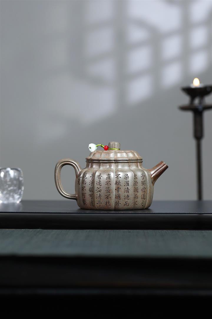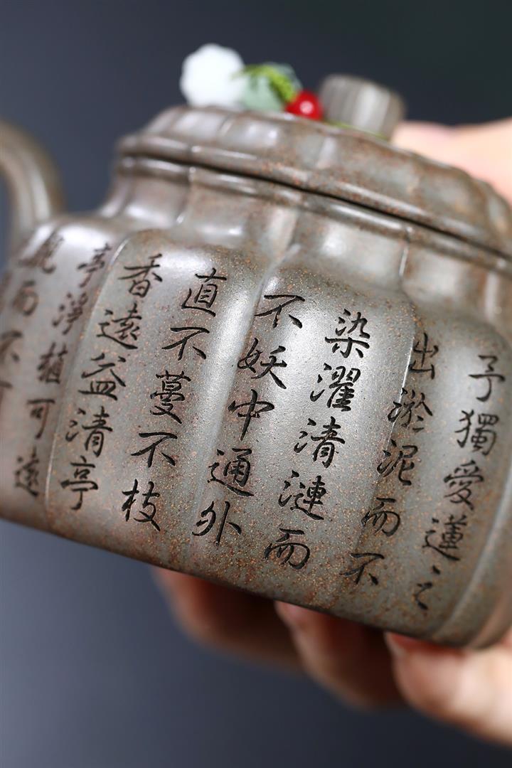 原礦鐵血紅砂刻字寒江茶壺POT7627