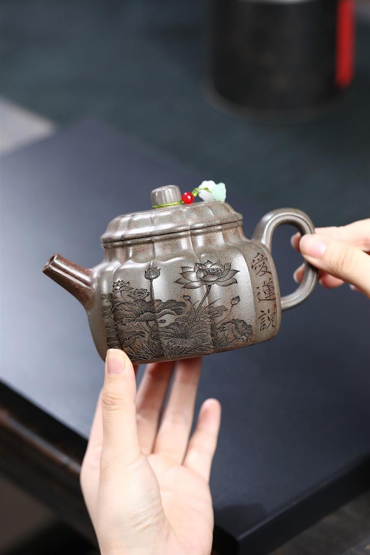 330CC原礦沈香泥柴燒筋紋蓮華茶壺POT8644