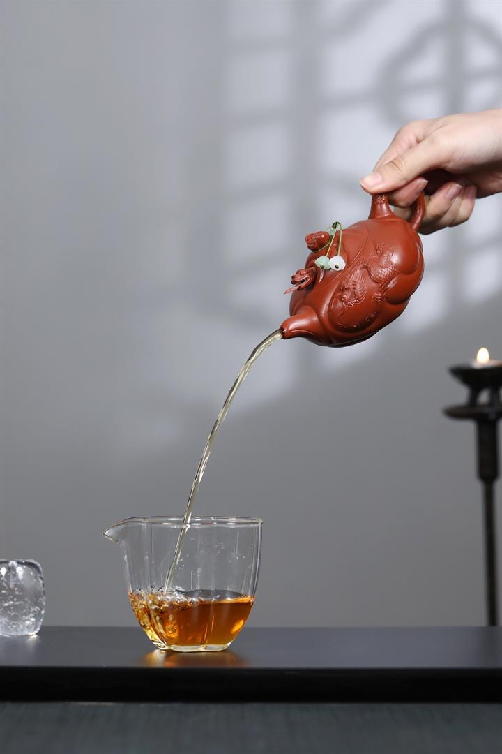【泥料特點】砂土氣重,似淳實農民,日久使用,漸露鋒芒,養成變化,溫潤莊重。紫砂是壹種雙重氣孔結構的多孔性材質,氣孔微細,密度高。用紫砂壺沏茶,不失原味,且香不渙散,得茶之真香真味。紫砂使用越久,壺身色澤越發光亮照人,氣韻溫雅。紫砂壺長久使用器身會因撫摸擦拭,變得越發溫潤光澤。