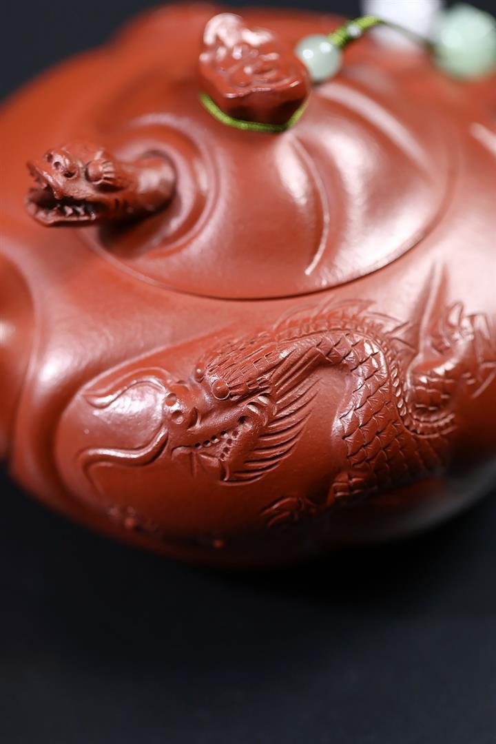 230cc原礦朱泥雕刻魚躍龍門茶壺POT8646