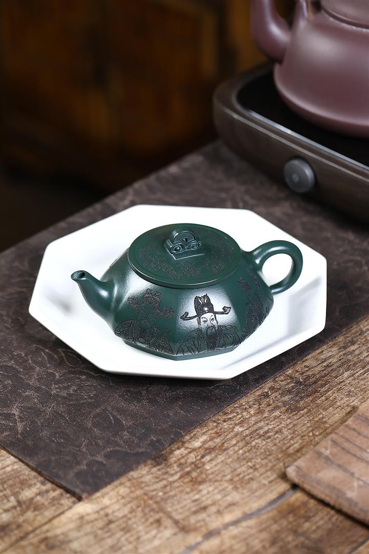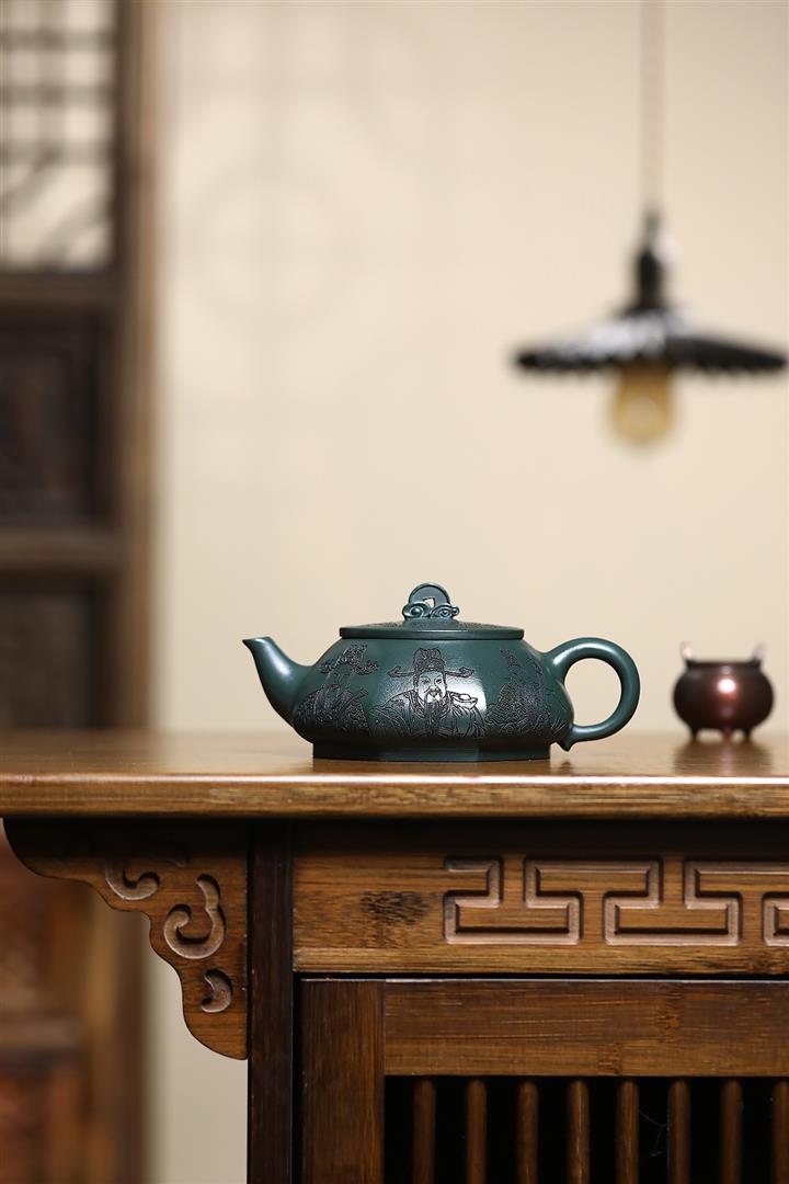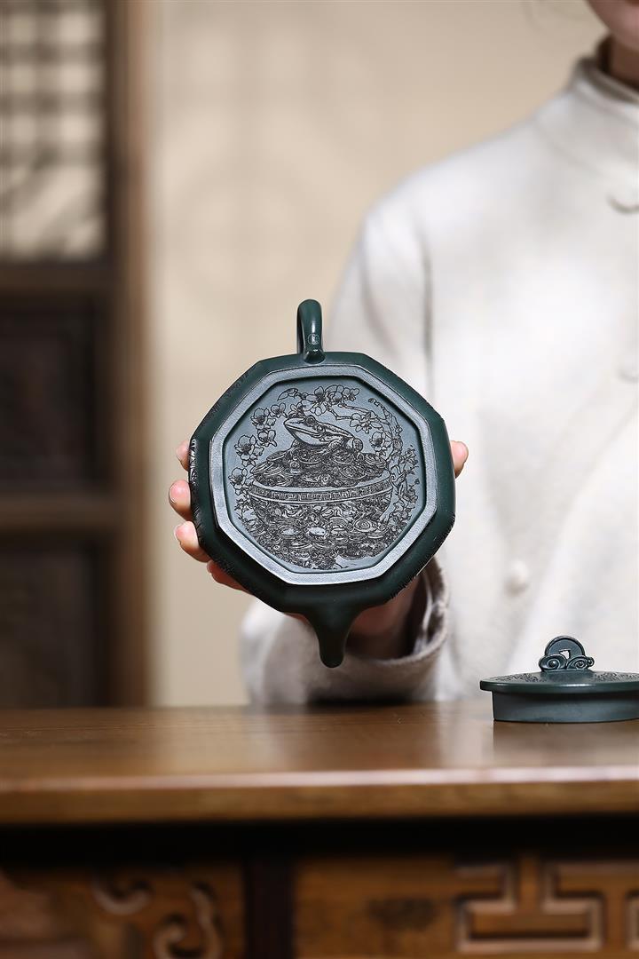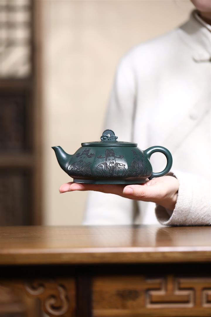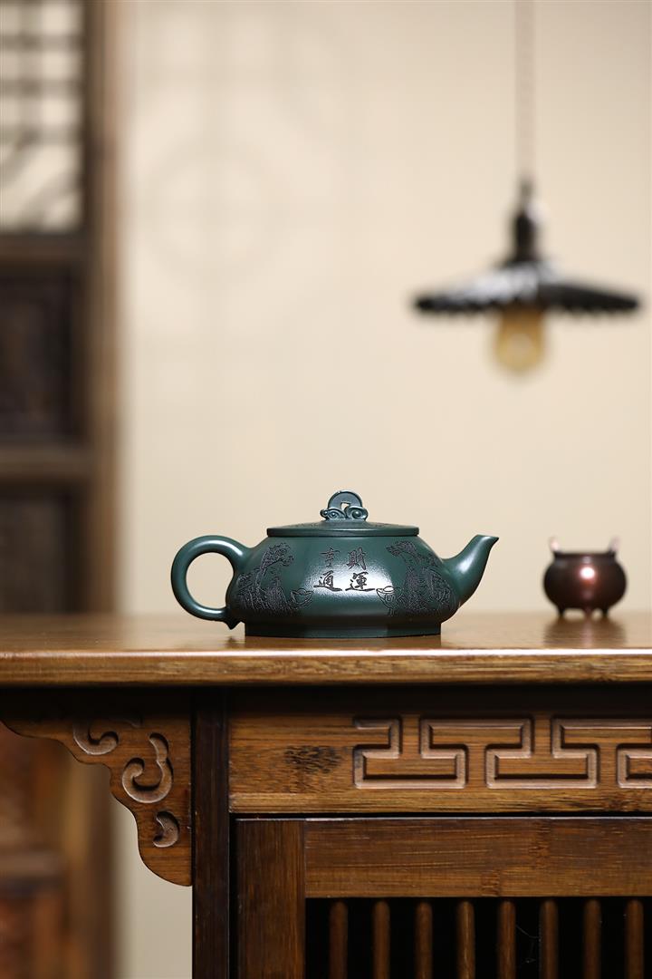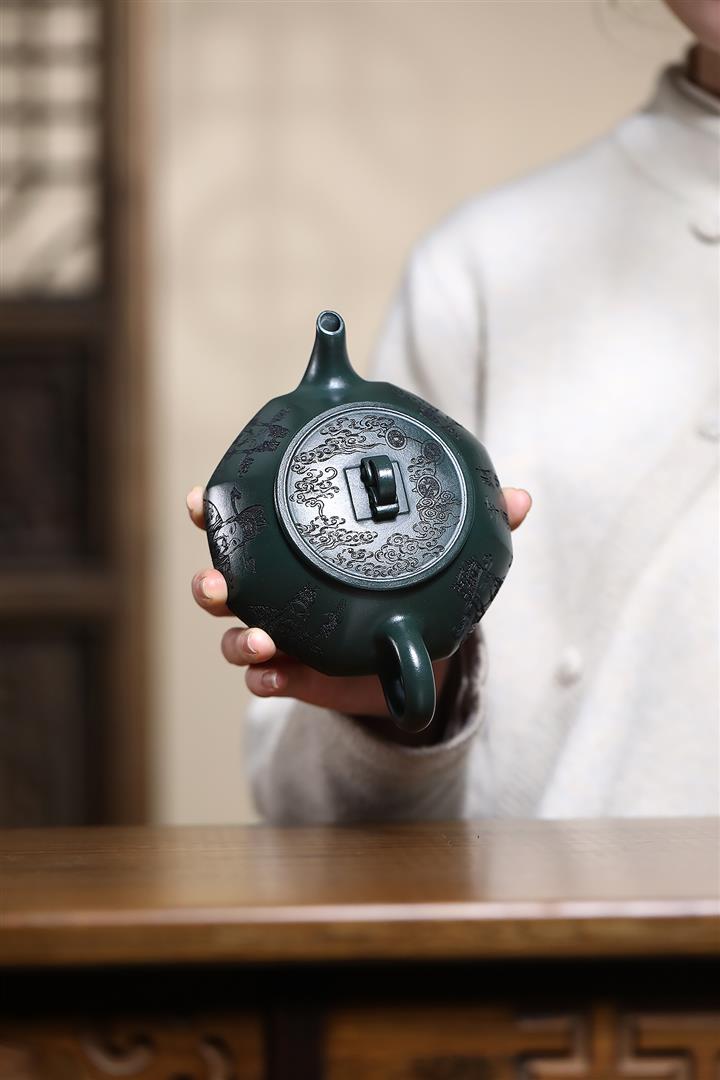 160cc翡翠綠泥描金寶相花-寒江茶壺POT8811