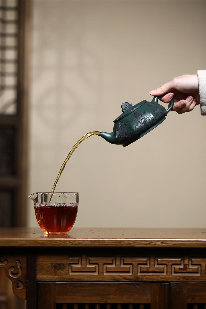 【作品介紹】此款壺形線條流暢,壺把,壺嘴,壺身壹氣呵成栩栩如生,是收藏把玩的好壺,泥料色澤古樸典雅,日久使用,漸露鋒芒,養成變化快,溫潤莊重,用其泡茶,使用的年代久,壺身就溫潤,泡出來的茶湯也就醇郁芳馨。