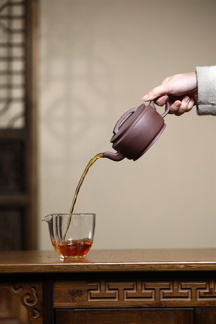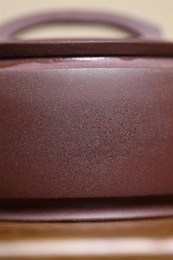 【泥料特點】砂土氣重,似淳實農民,日久使用,漸露鋒芒,養成變化,溫潤莊重。紫砂是壹種雙重氣孔結構的多孔性材質,氣孔微細,密度高。用紫砂壺沏茶,不失原味,且香不渙散,得茶之真香真味。紫砂使用越久,壺身色澤越發光亮照人,氣韻溫雅。紫砂壺長久使用器身會因撫摸擦拭,變得越發溫潤光澤。