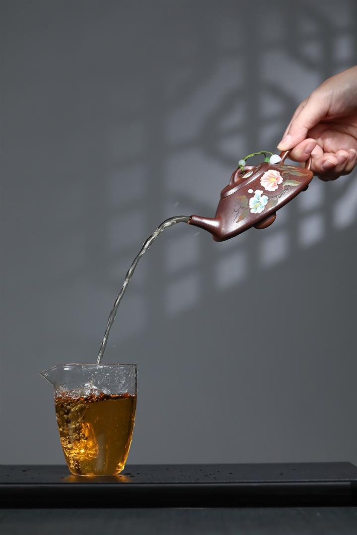 【泥料特點】砂土氣重,似淳實農民,日久使用,漸露鋒芒,養成變化,溫潤莊重。紫砂是壹種雙重氣孔結構的多孔性材質,氣孔微細,密度高。用紫砂壺沏茶,不失原味,且香不渙散,得茶之真香真味。紫砂使用越久,壺身色澤越發光亮照人,氣韻溫雅。紫砂壺長久使用器身會因撫摸擦拭,變得越發溫潤光澤。