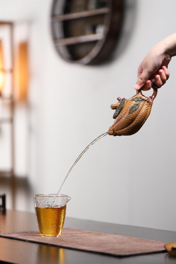 【泥料特點】砂土氣重,似淳實農民,日久使用,漸露鋒芒,養成變化,溫潤莊重。紫砂是壹種雙重氣孔結構的多孔性材質,氣孔微細,密度高。用紫砂壺沏茶,不失原味,且香不渙散,得茶之真香真味。紫砂使用越久,壺身色澤越發光亮照人,氣韻溫雅。紫砂壺長久使用器身會因撫摸擦拭,變得越發溫潤光澤。