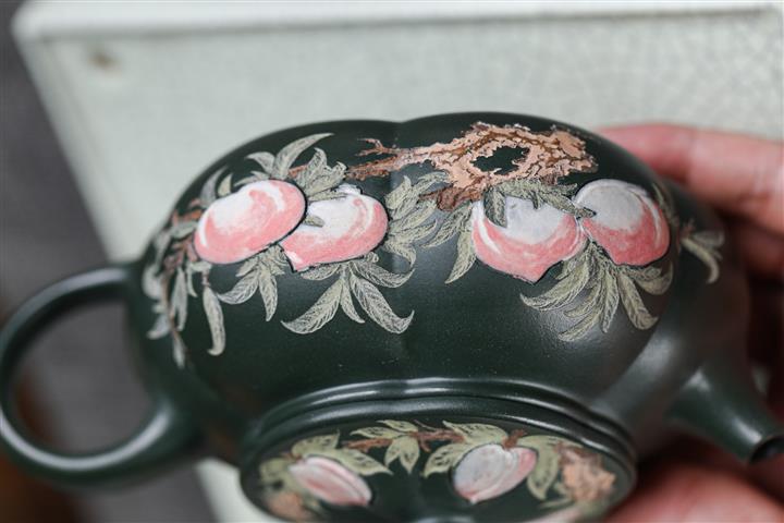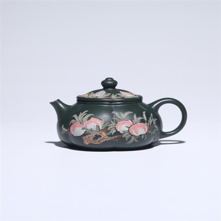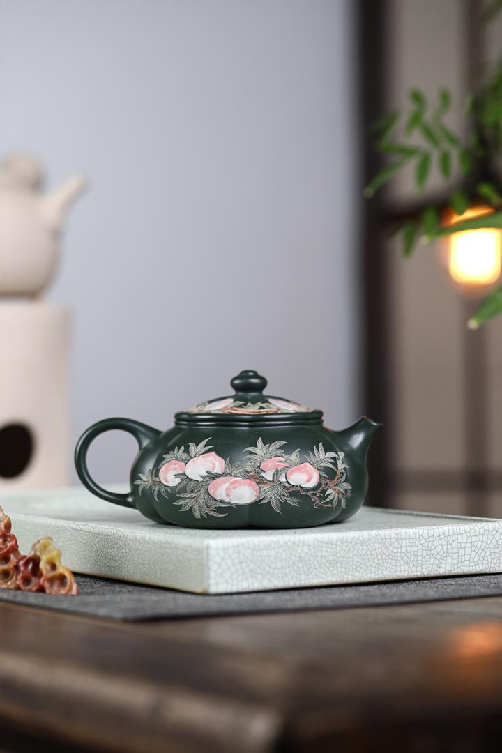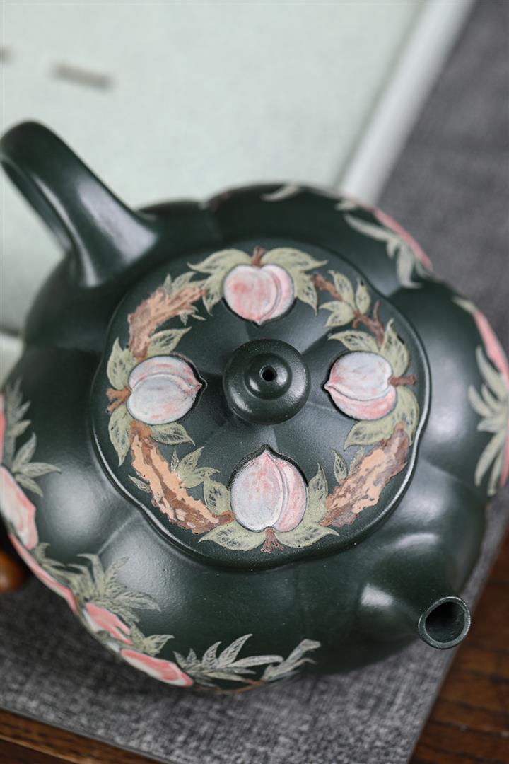 280cc原礦墨綠泥泥繪寒江茶壺POT8804