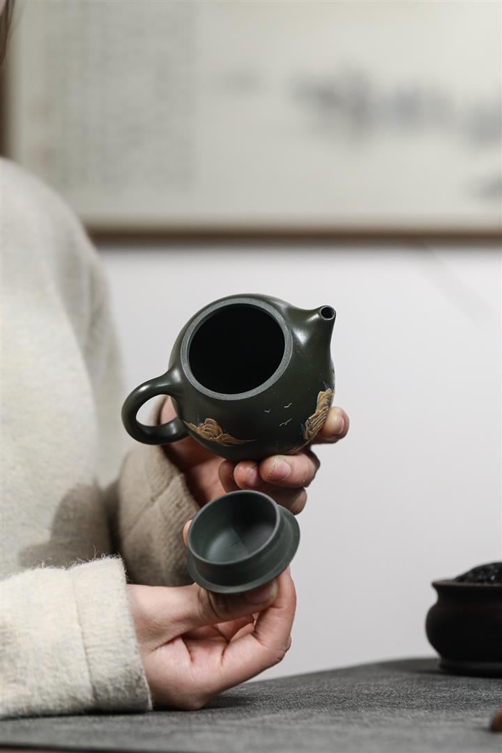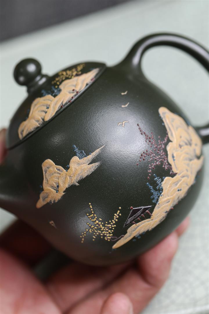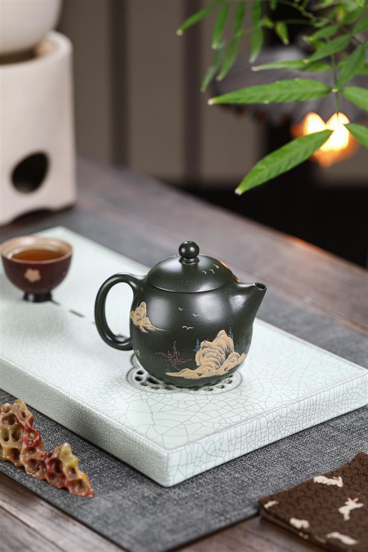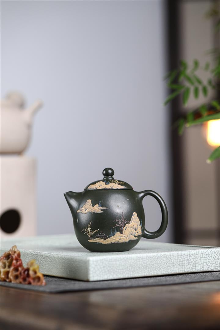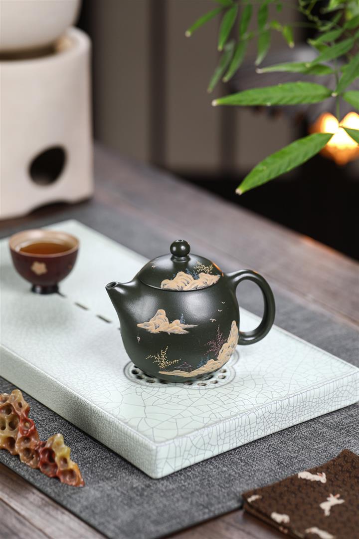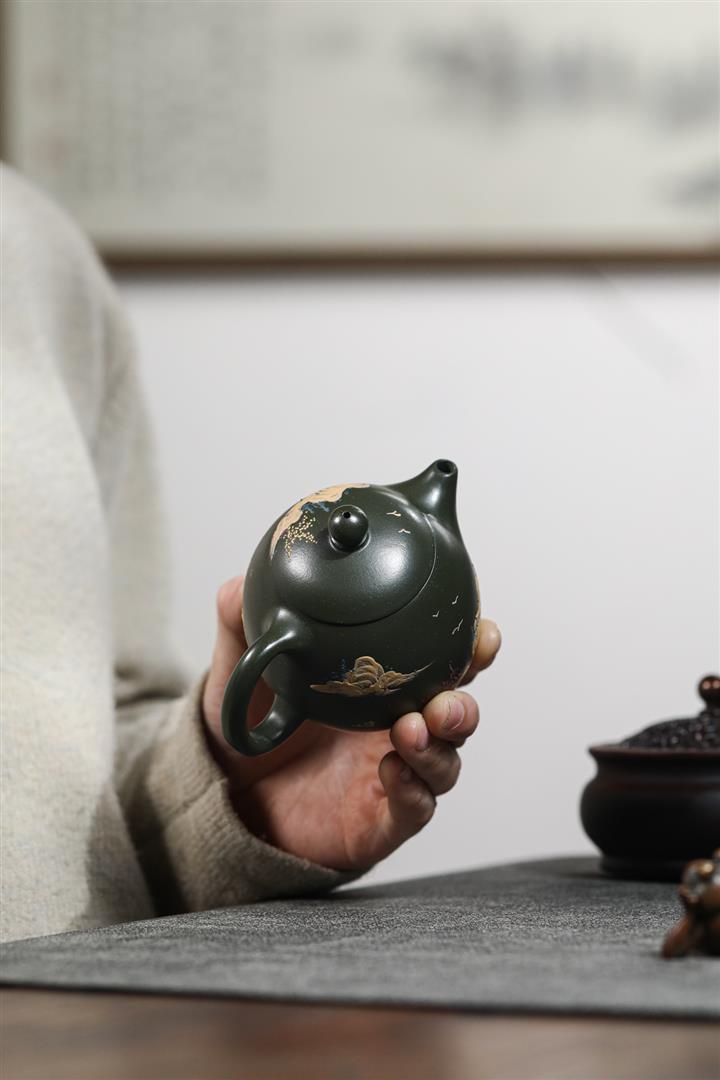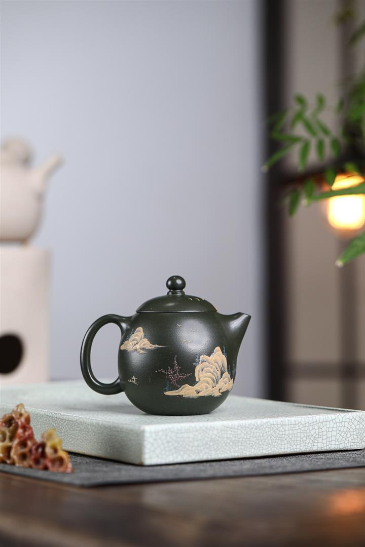 200cc原礦墨綠泥彩繪龍蛋茶壺POT8805