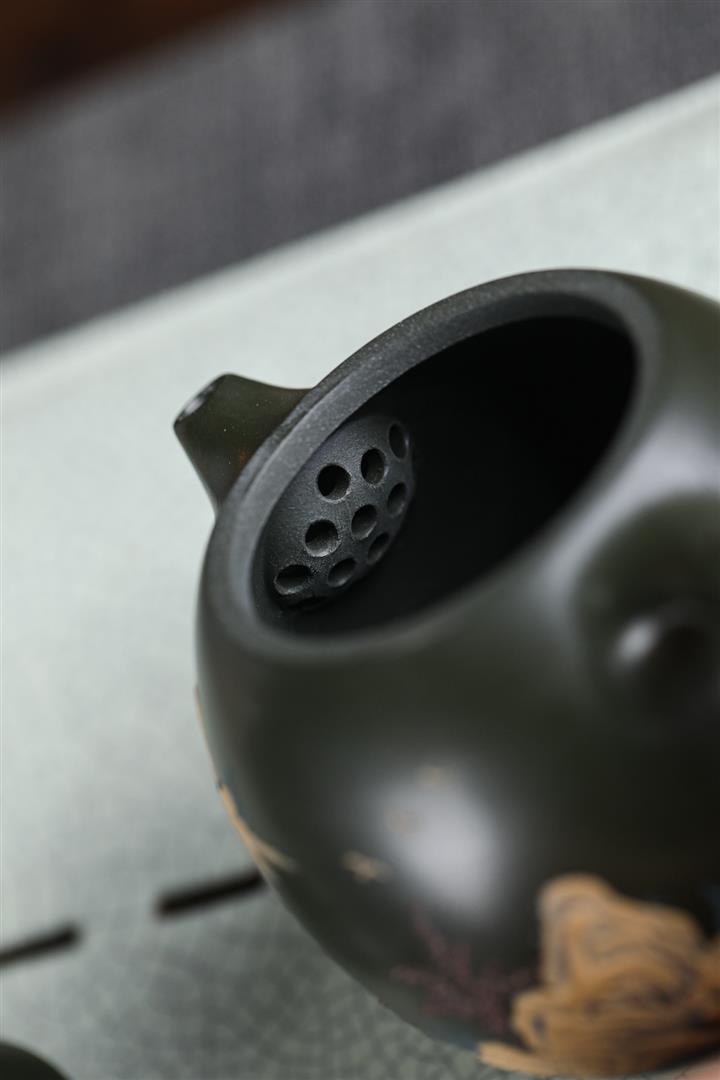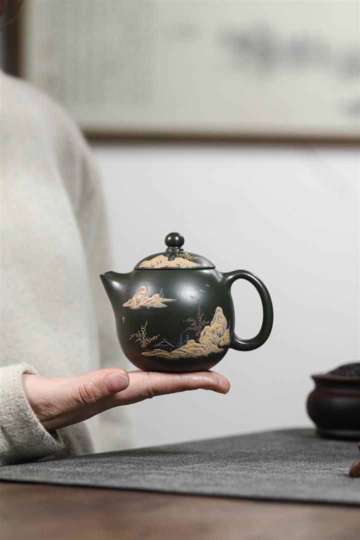 300cc原礦紫泥泥繪山水德鐘泡茶壺POT8413