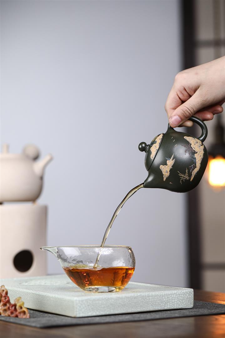 【作品介紹】此款壺形線條流暢,壺把,壺嘴,壺身壹氣呵成栩栩如生,是收藏把玩的好壺,泥料色澤古樸典雅,日久使用,漸露鋒芒,養成變化快,溫潤莊重,用其泡茶,使用的年代久,壺身就溫潤,泡出來的茶湯也就醇郁芳馨。