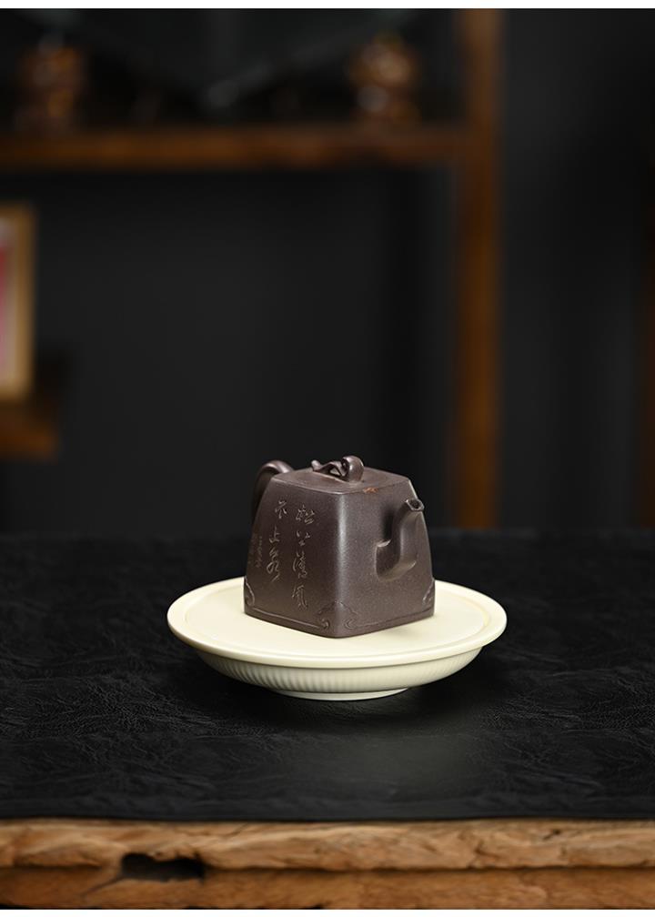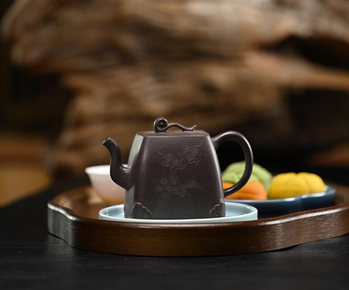 【泥料特點】砂土氣重,似淳實農民,日久使用,漸露鋒芒,養成變化,溫潤莊重。紫砂是壹種雙重氣孔結構的多孔性材質,氣孔微細,密度高。用紫砂壺沏茶,不失原味,且香不渙散,得茶之真香真味。紫砂使用越久,壺身色澤越發光亮照人,氣韻溫雅。紫砂壺長久使用器身會因撫摸擦拭,變得越發溫潤光澤。