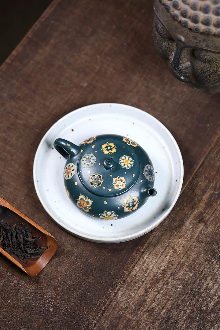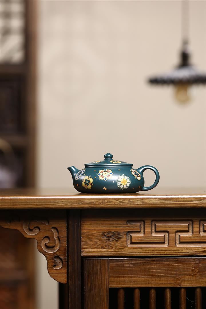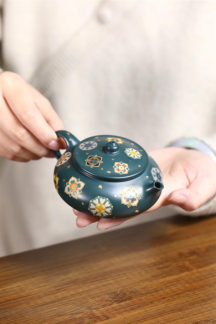 160cc翡翠綠泥描金寶相花-寒江茶壺POT8811