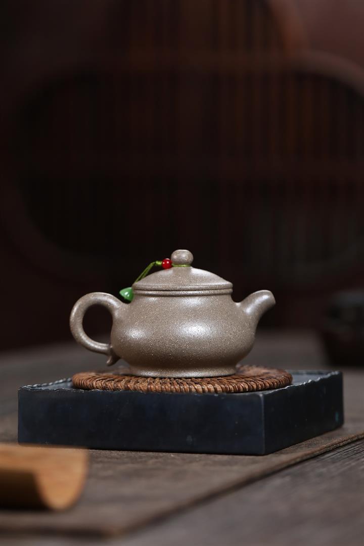 【泥料特點】砂土氣重,似淳實農民,日久使用,漸露鋒芒,養成變化,溫潤莊重。紫砂是壹種雙重氣孔結構的多孔性材質,氣孔微細,密度高。用紫砂壺沏茶,不失原味,且香不渙散,得茶之真香真味。紫砂使用越久,壺身色澤越發光亮照人,氣韻溫雅。紫砂壺長久使用器身會因撫摸擦拭,變得越發溫潤光澤。