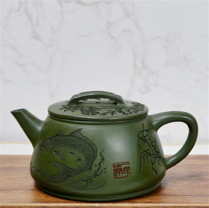 250cc原礦綠泥山水獨占鰲頭泡茶壺POT8511
