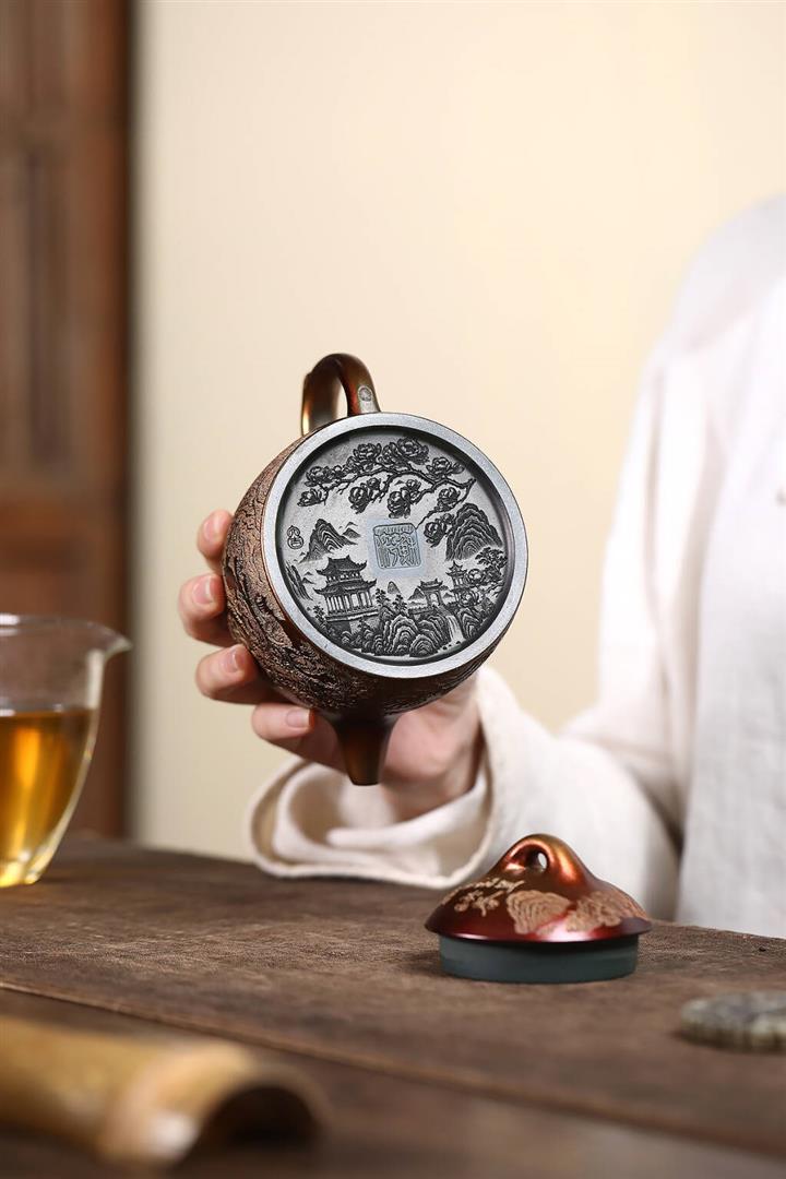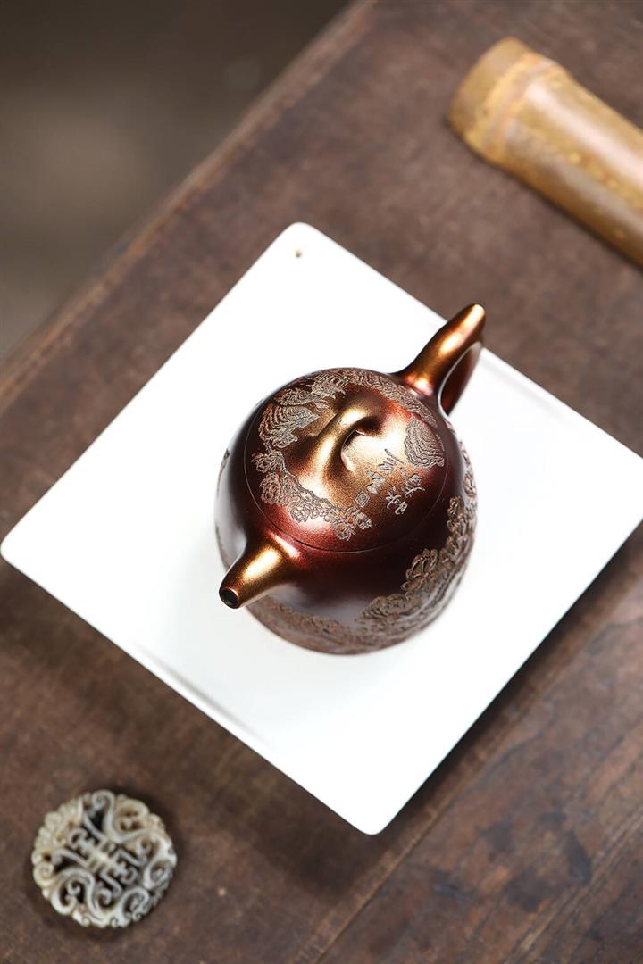 200cc原礦赤金朱泥靈猴獻瑞茶壺POT8513