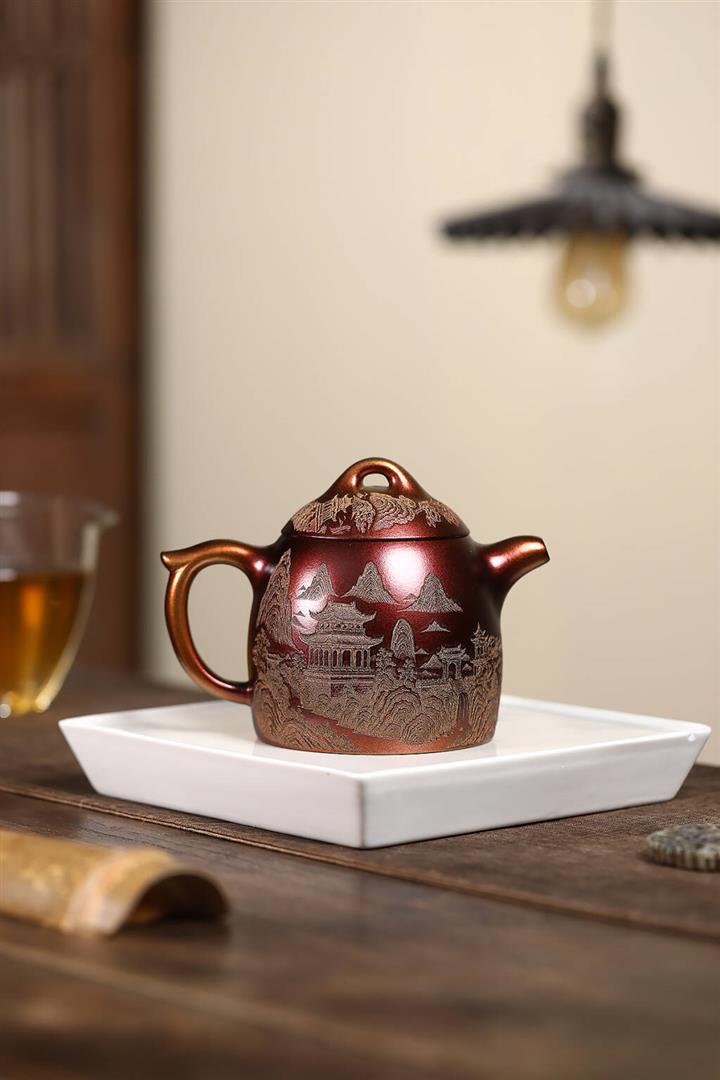 130cc-220cc原礦大紅袍朱泥紫朱泥綠泥灑金茶壺POT8510
