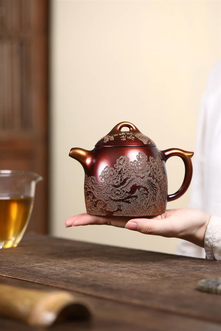 250cc原礦龍血砂泥瓊枝瑞羽茶壺POT8509