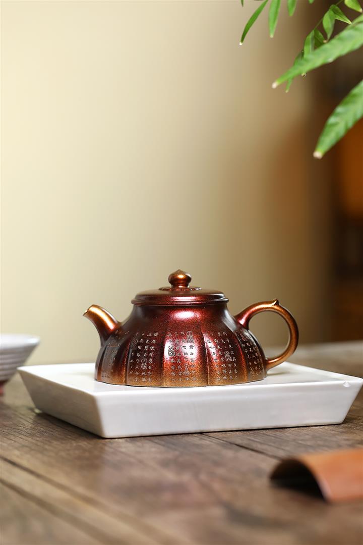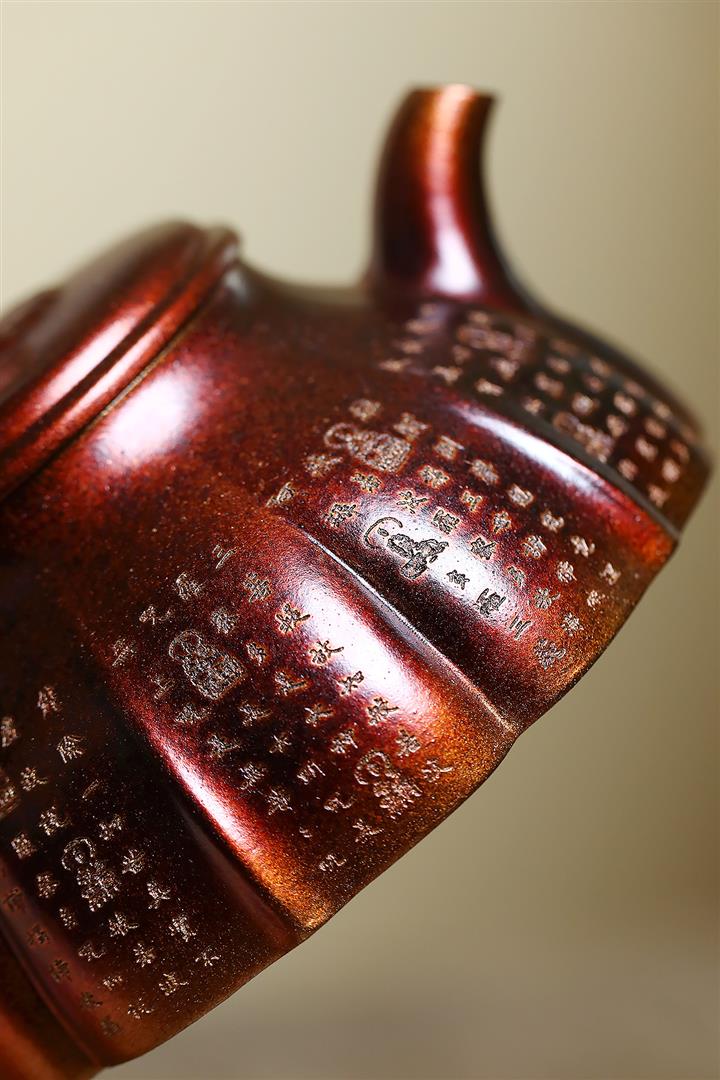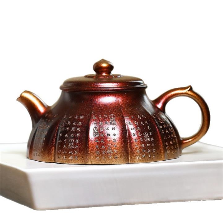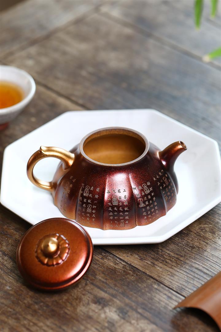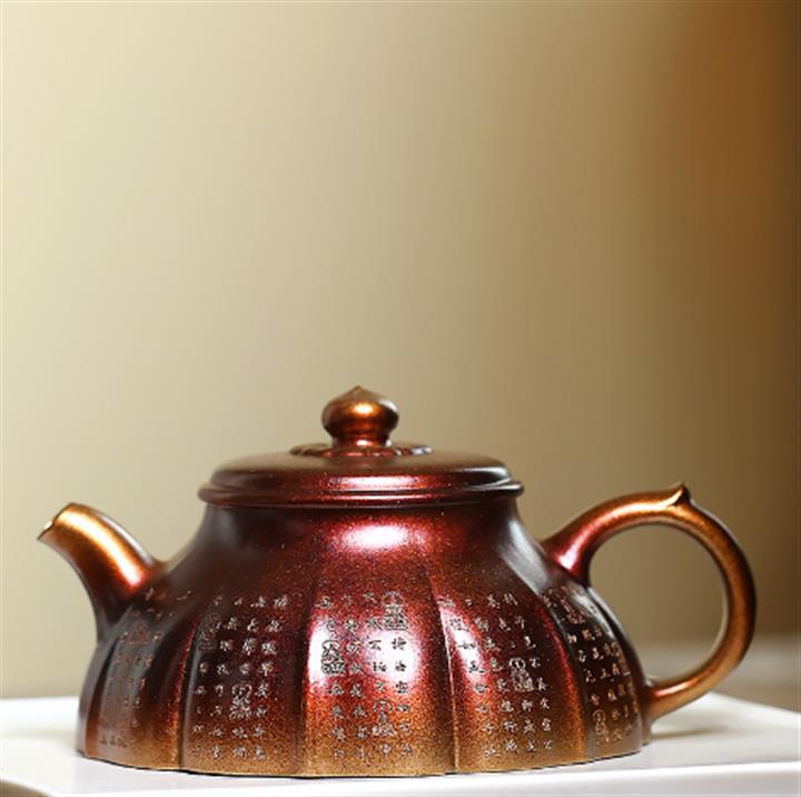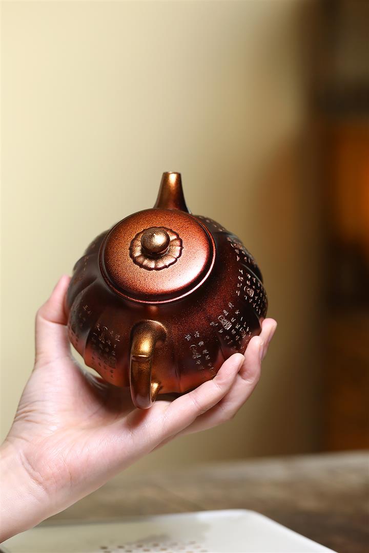 原礦石黃泥滿刻牛蓋茶壺POT7410
