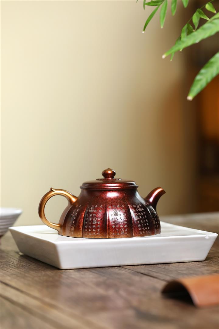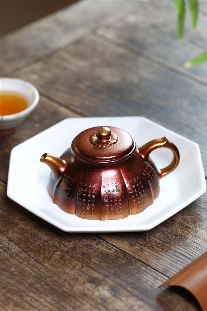 【泥料特點】砂土氣重,似淳實農民,日久使用,漸露鋒芒,養成變化,溫潤莊重。紫砂是壹種雙重氣孔結構的多孔性材質,氣孔微細,密度高。用紫砂壺沏茶,不失原味,且香不渙散,得茶之真香真味。紫砂使用越久,壺身色澤越發光亮照人,氣韻溫雅。紫砂壺長久使用器身會因撫摸擦拭,變得越發溫潤光澤。