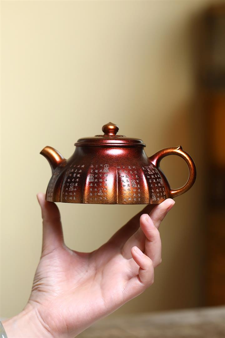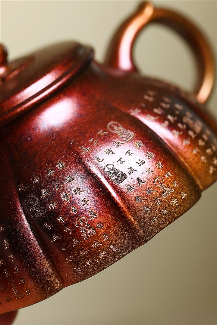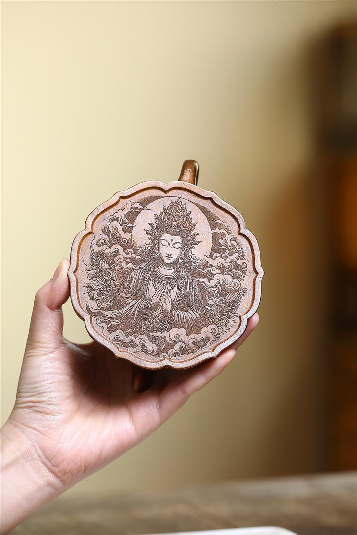 原礦石黃泥滿刻大周盤茶壺POT7411