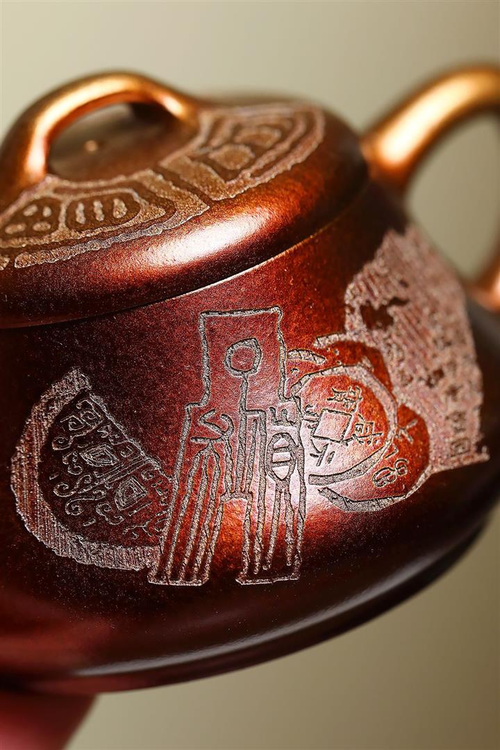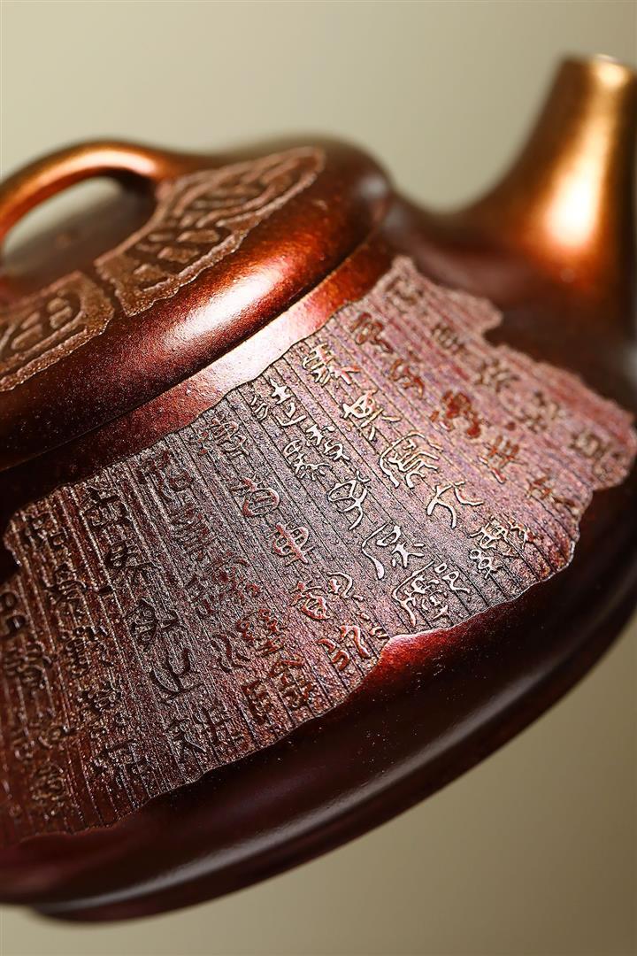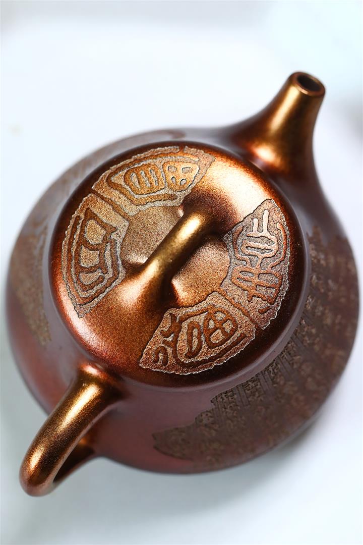 原礦大紅袍手工蛇紋鎏金龍紋壺POT6775