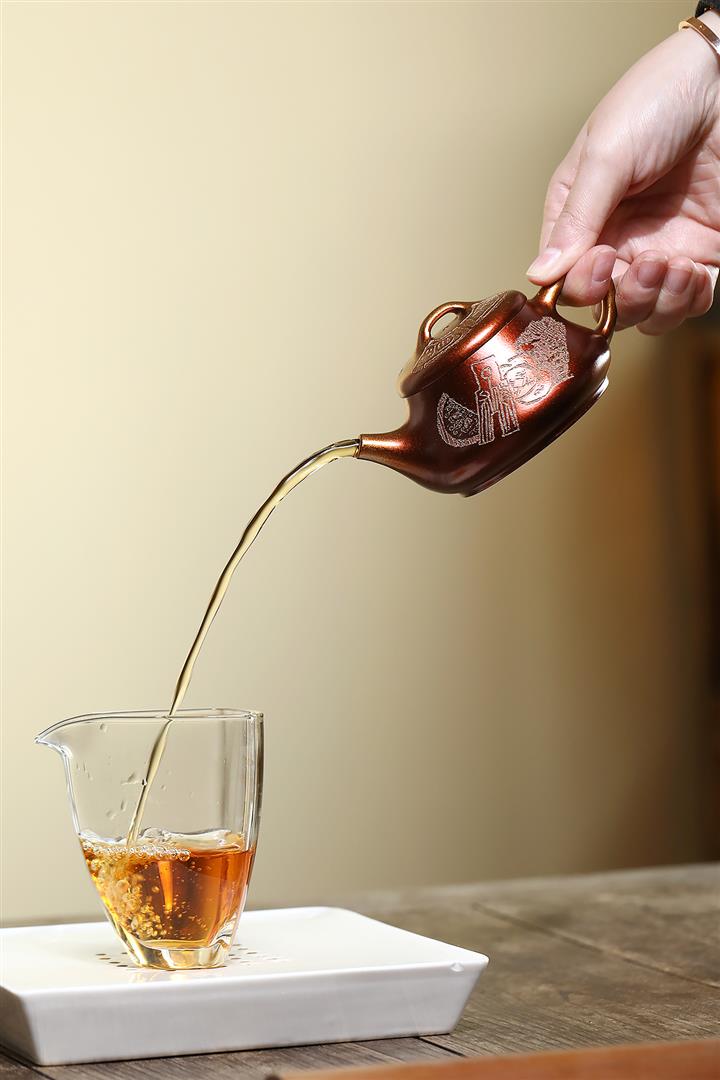 【泥料特點】砂土氣重,似淳實農民,日久使用,漸露鋒芒,養成變化,溫潤莊重。紫砂是壹種雙重氣孔結構的多孔性材質,氣孔微細,密度高。用紫砂壺沏茶,不失原味,且香不渙散,得茶之真香真味。紫砂使用越久,壺身色澤越發光亮照人,氣韻溫雅。紫砂壺長久使用器身會因撫摸擦拭,變得越發溫潤光澤。