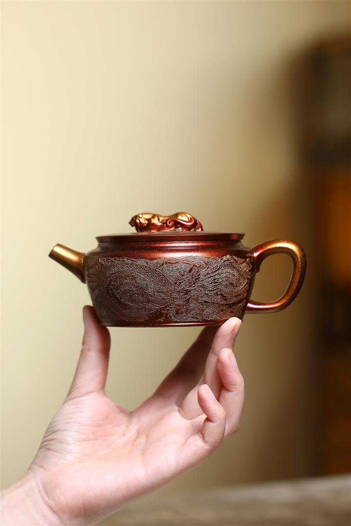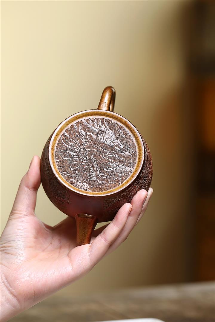 原礦紫龍血雲扭如意紫砂壺POT4964