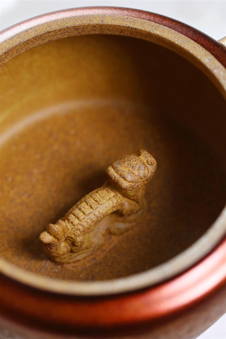 【作品介紹】此款壺形線條流暢,壺把,壺嘴,壺身壹氣呵成栩栩如生,是收藏把玩的好壺,泥料色澤古樸典雅,日久使用,漸露鋒芒,養成變化快,溫潤莊重,用其泡茶,使用的年代久,壺身就溫潤,泡出來的茶湯也就醇郁芳馨。