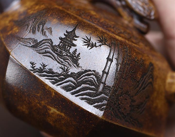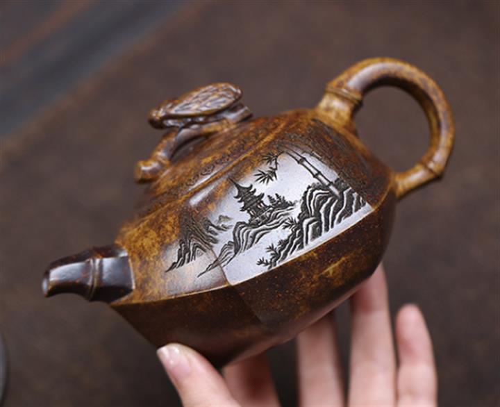 紫泥山水金鐘紫砂壺POT5253