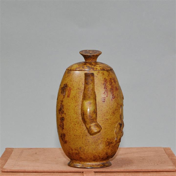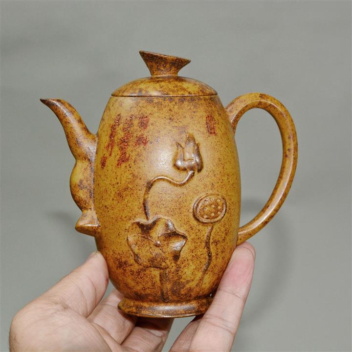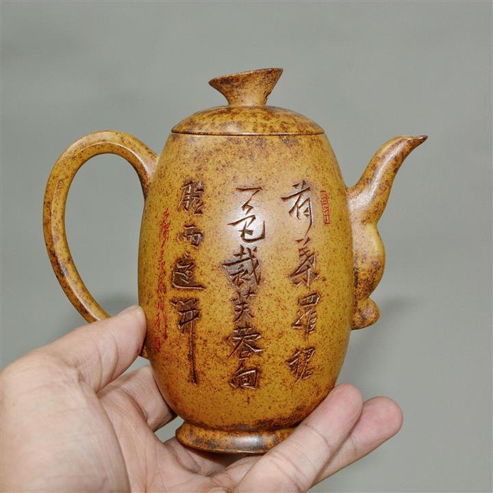 原礦黃金段泥還原燒竹鼓茶壺POT7476