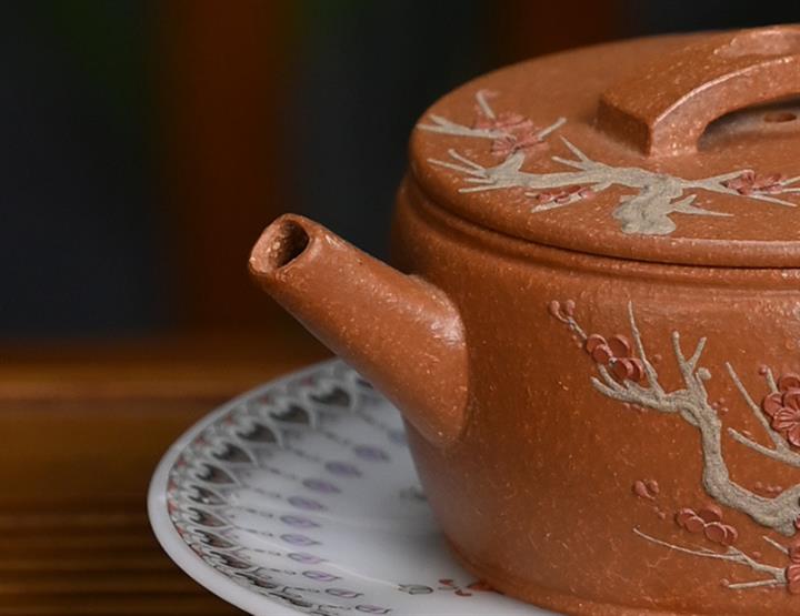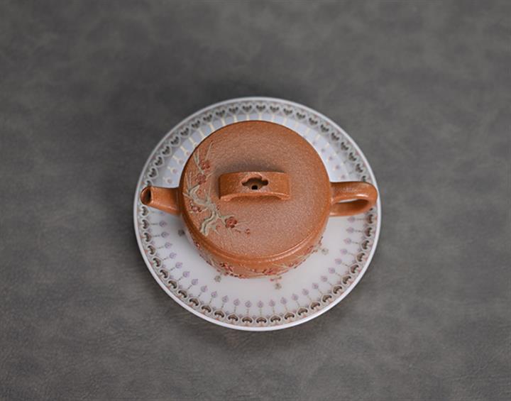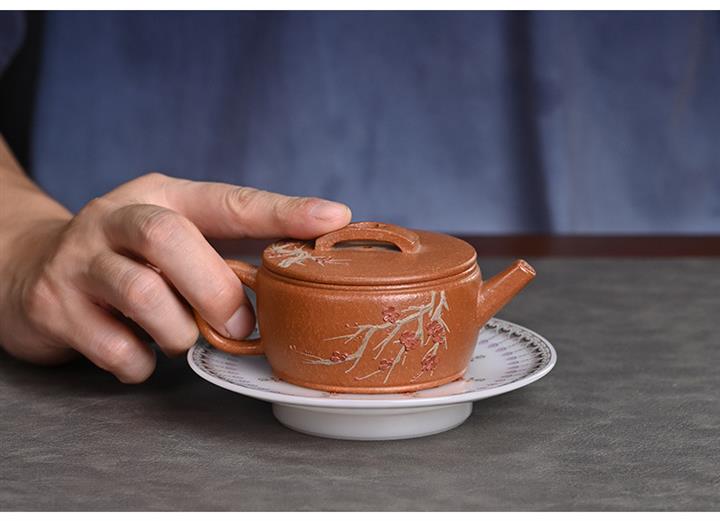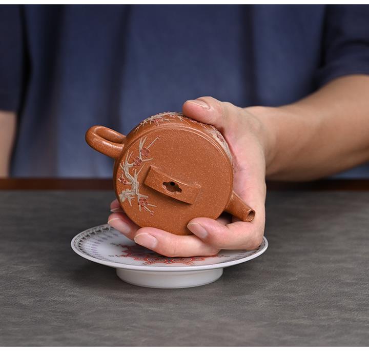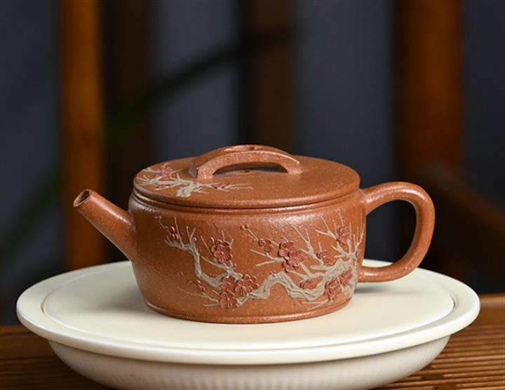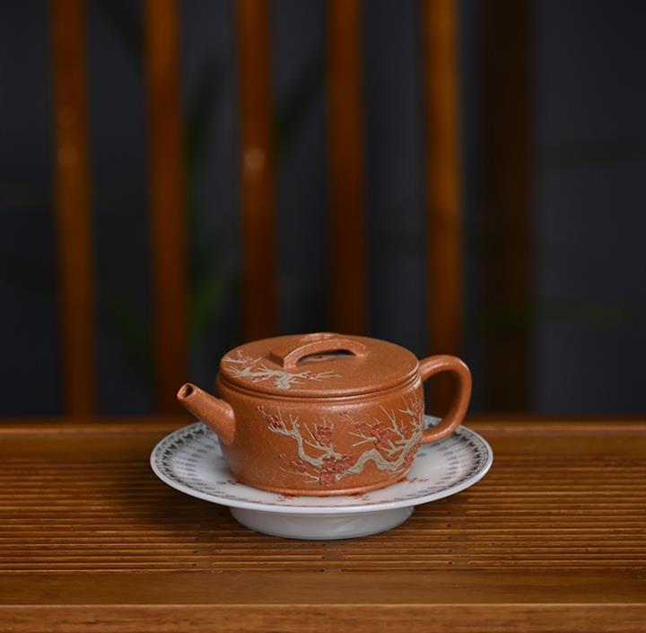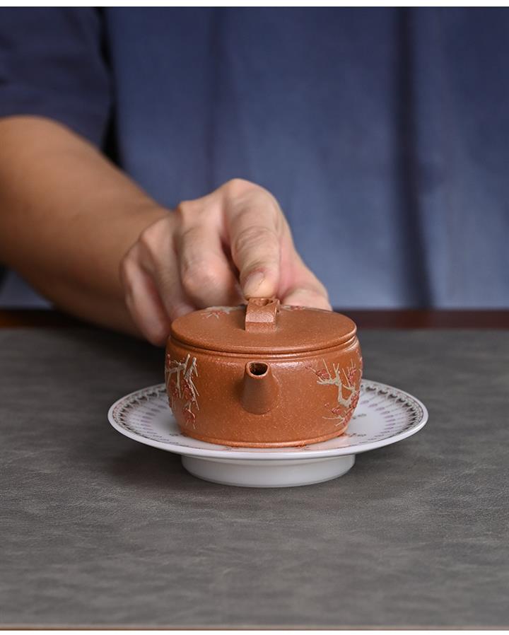 150cc原礦降坡泥堆繪梅花漢瓦茶壺POT8853
