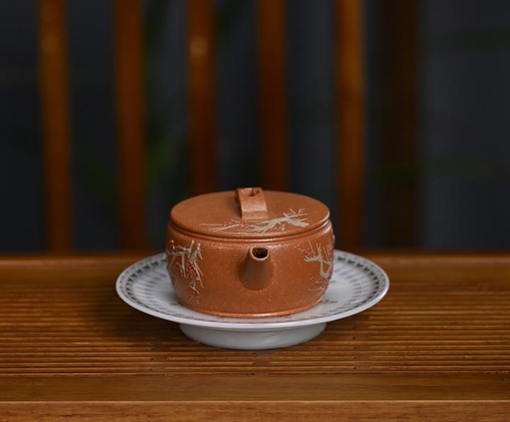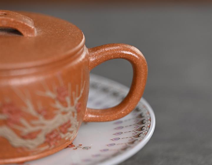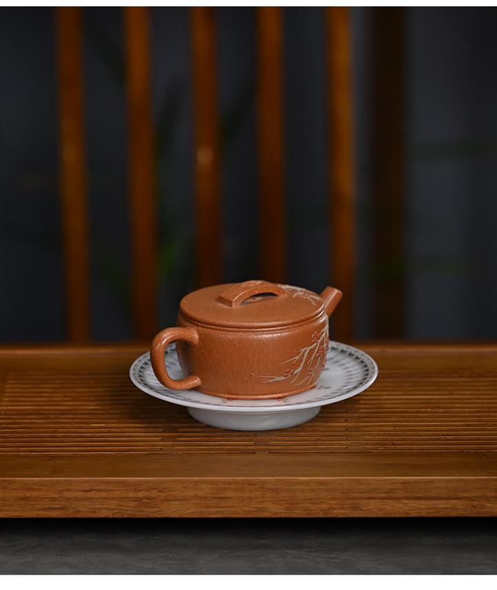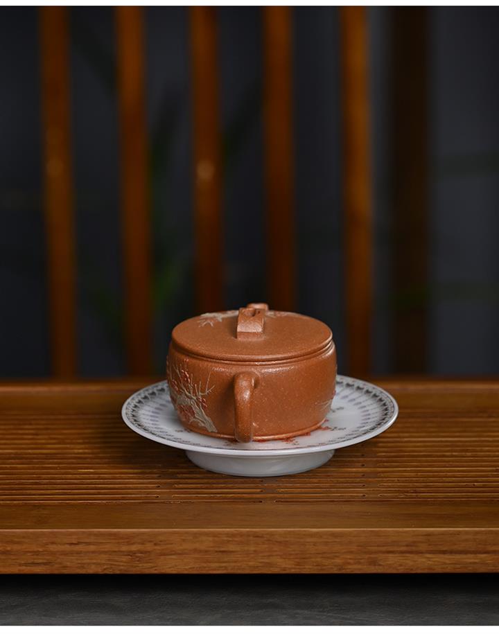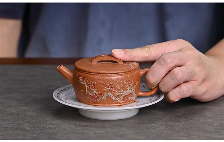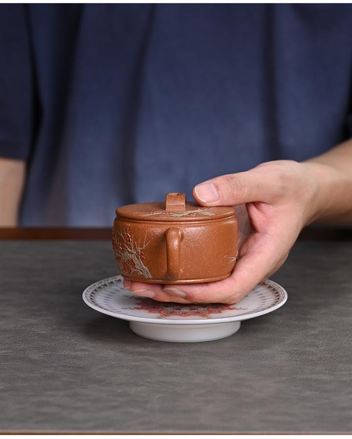 150cc原礦降坡泥堆繪梅花漢瓦茶壺POT8853