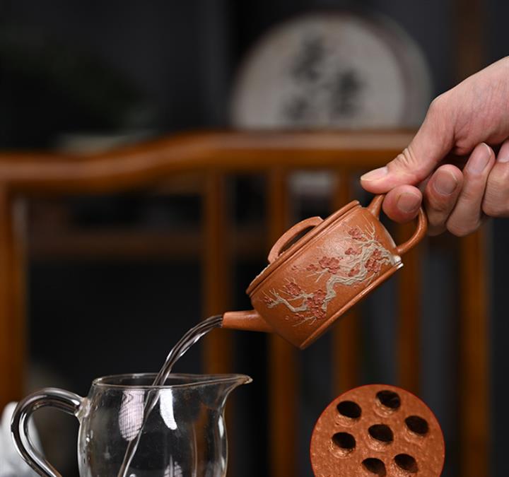 【泥料特點】砂土氣重,似淳實農民,日久使用,漸露鋒芒,養成變化,溫潤莊重。紫砂是壹種雙重氣孔結構的多孔性材質,氣孔微細,密度高。用紫砂壺沏茶,不失原味,且香不渙散,得茶之真香真味。紫砂使用越久,壺身色澤越發光亮照人,氣韻溫雅。紫砂壺長久使用器身會因撫摸擦拭,變得越發溫潤光澤。